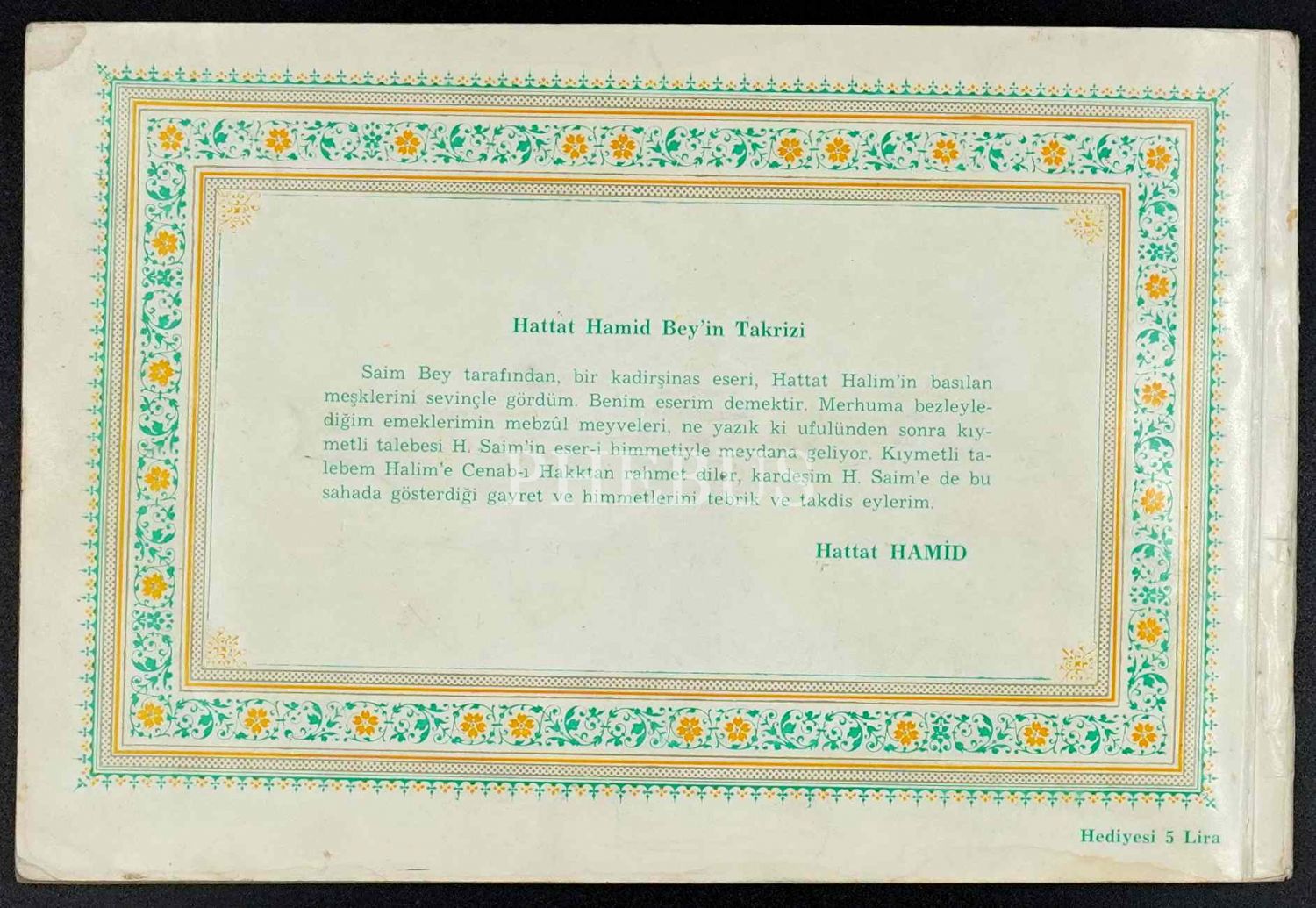 Saim Özel´den Hattat Hamid Aytaç´a ithaflı ve imzalı...