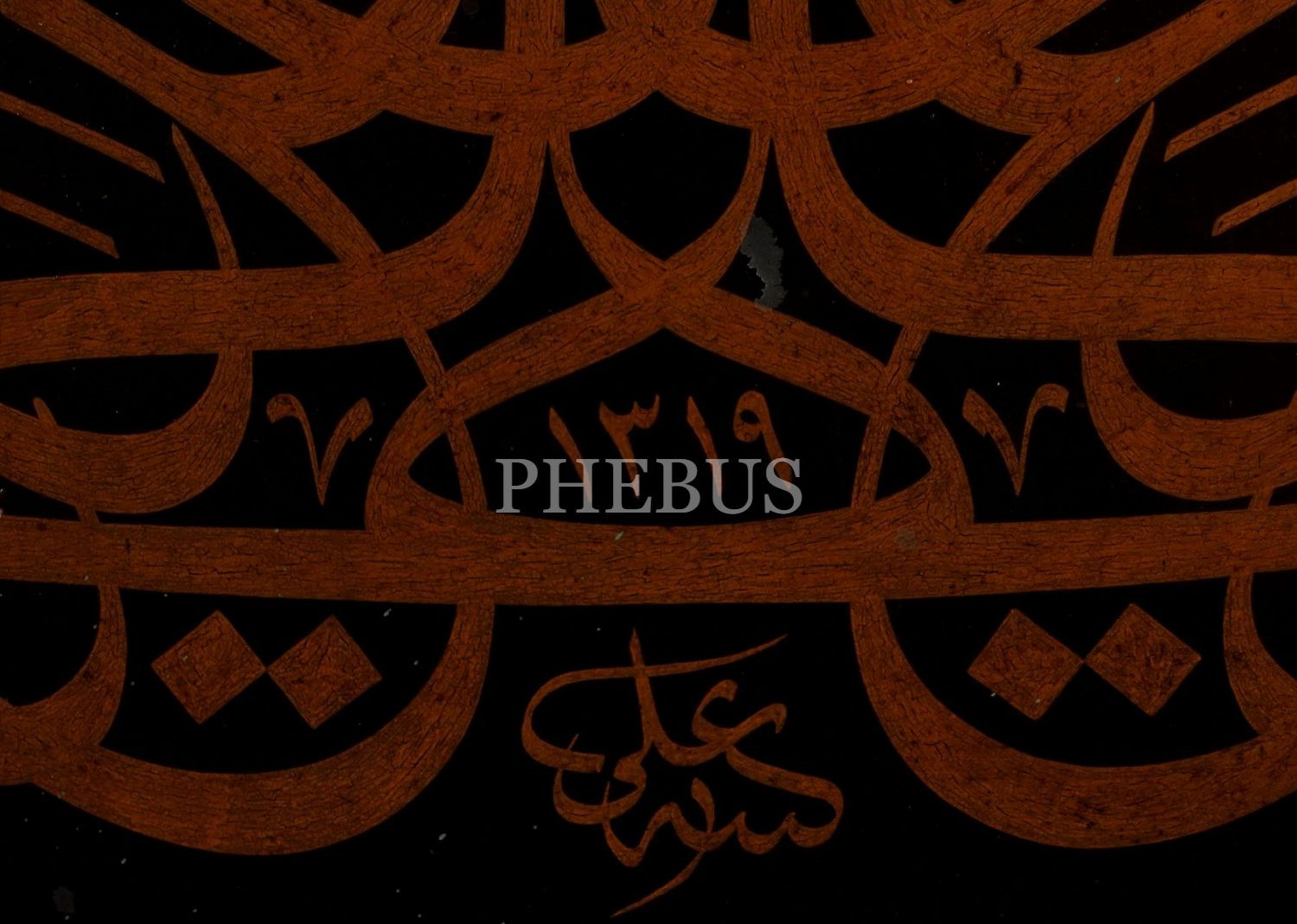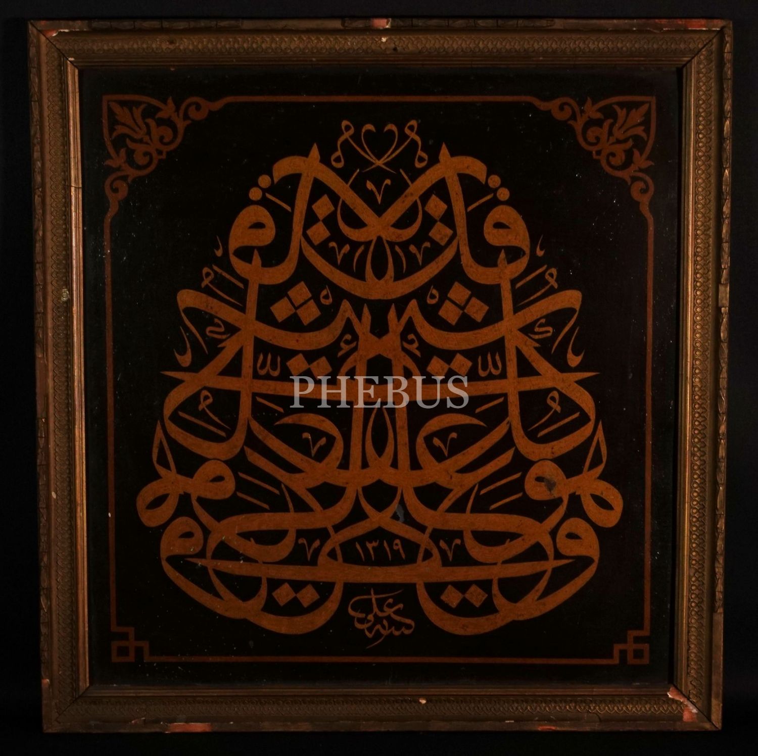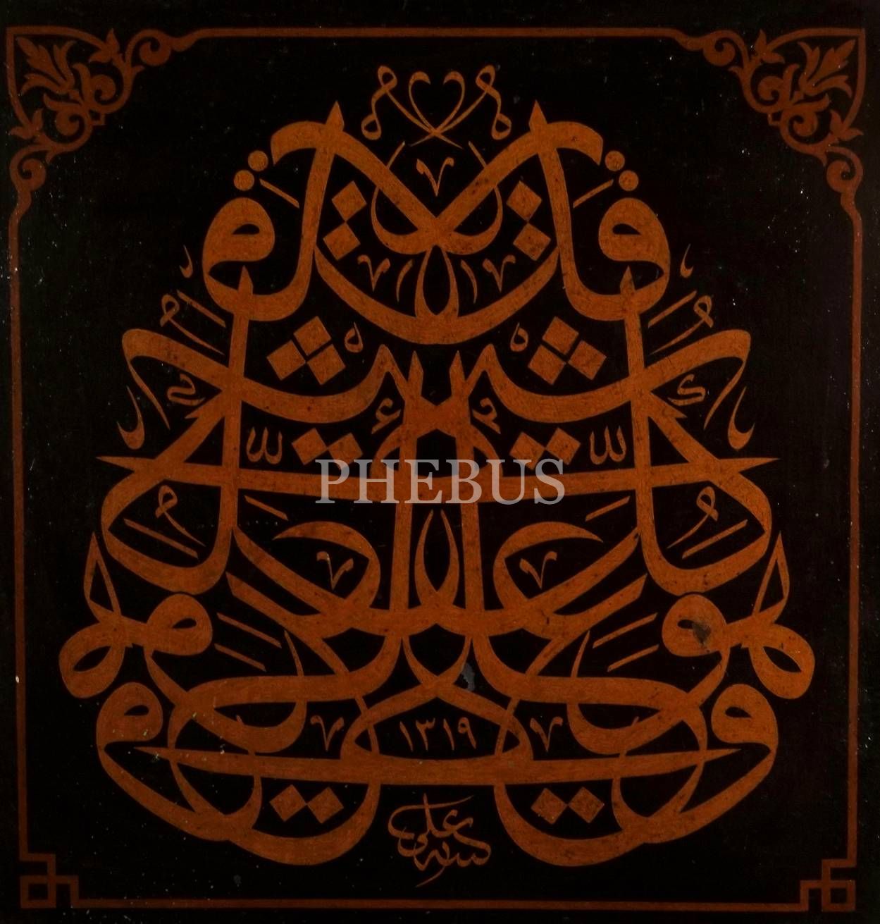 Ali ketebeli, 1319 tarihli duralit üzerine celi sülüs müsenna yazı, 73x76 cm...