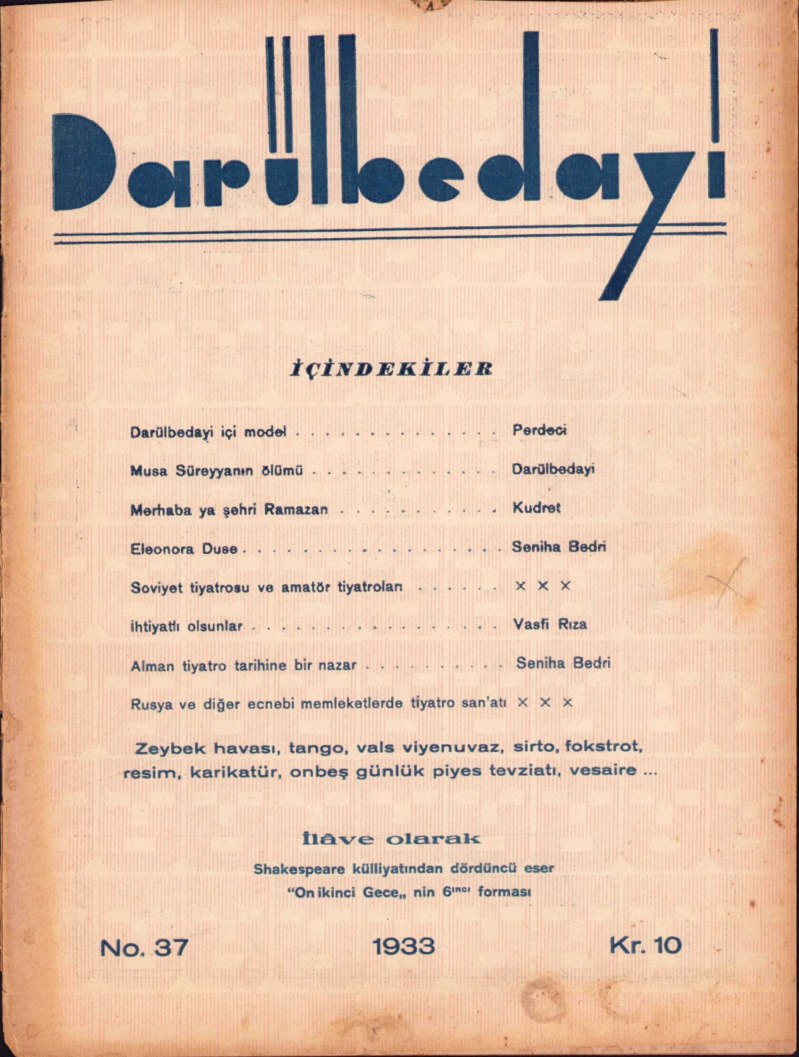 Darülbedayi mecmuası, 1933, resimli, 16 sayfa, 20x28 cm.