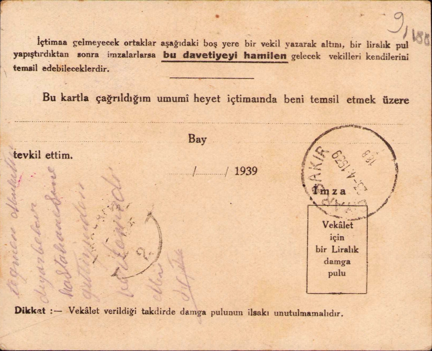 27 Nisan 1939 Umumi Heyet toplantı davetiyesi