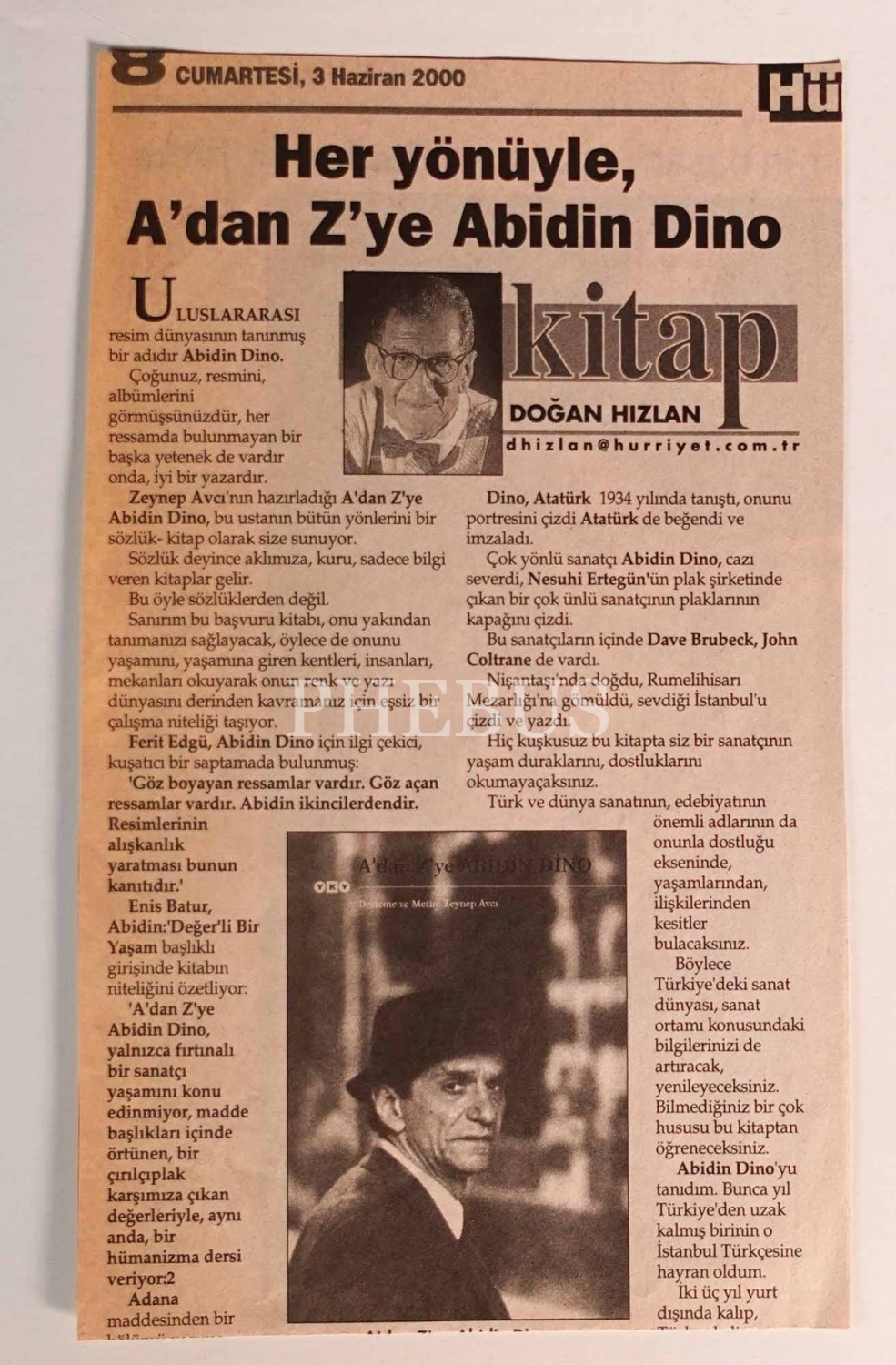 Abidin Dino ile alakalı bir gazete küpürü içerisindedir.