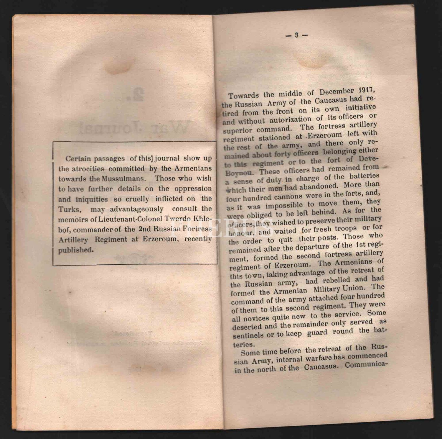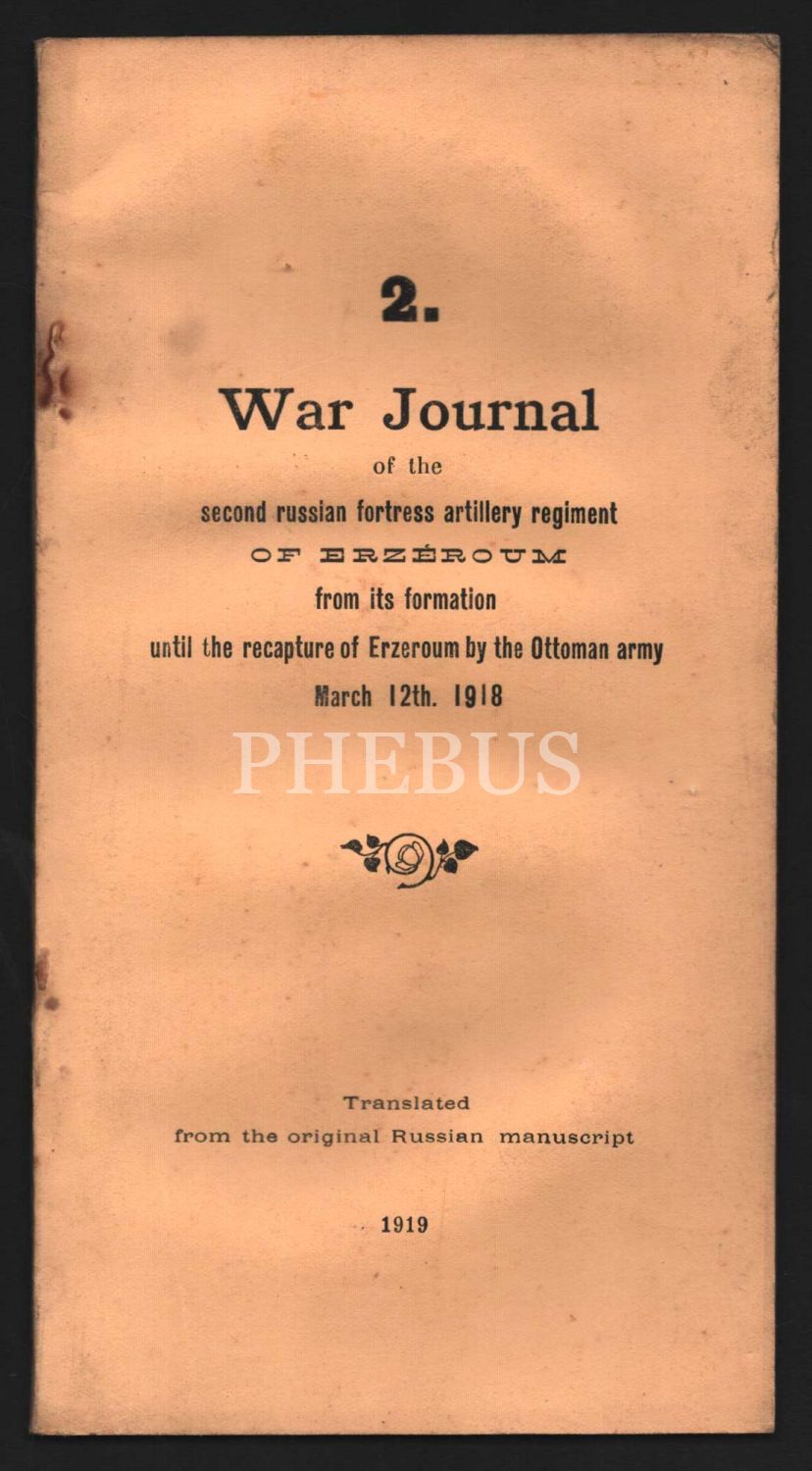 WAR JOURNAL OF THE SECOND RUSSIAN FORTRESS ARTILLERY REGIMENT OF ERZEROU FROM ITS FORMATION UNTIL THE RECAPTURE OF ERZEROUM BY THE OTTOMAN ARMY, MARCH 12TH. 1918 (İngilizce), 1919, 36 sayfa, 12x22 cm...