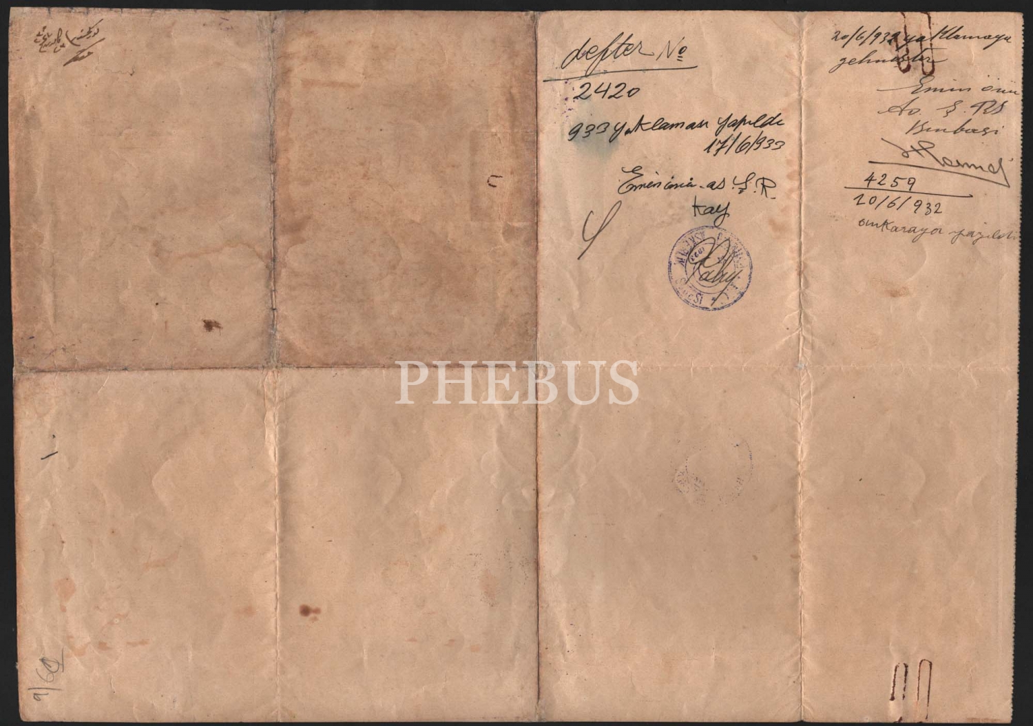 Burhan Efendi´nin Beylerbeyi İhtiyat-ı Zabıtan Mektebi´nde eğitimini tamamlayıp Mülazım-ı Sani rütbesiyle mezun olduğuna dair 1325 tarihli diploması, 40x28 cm...
