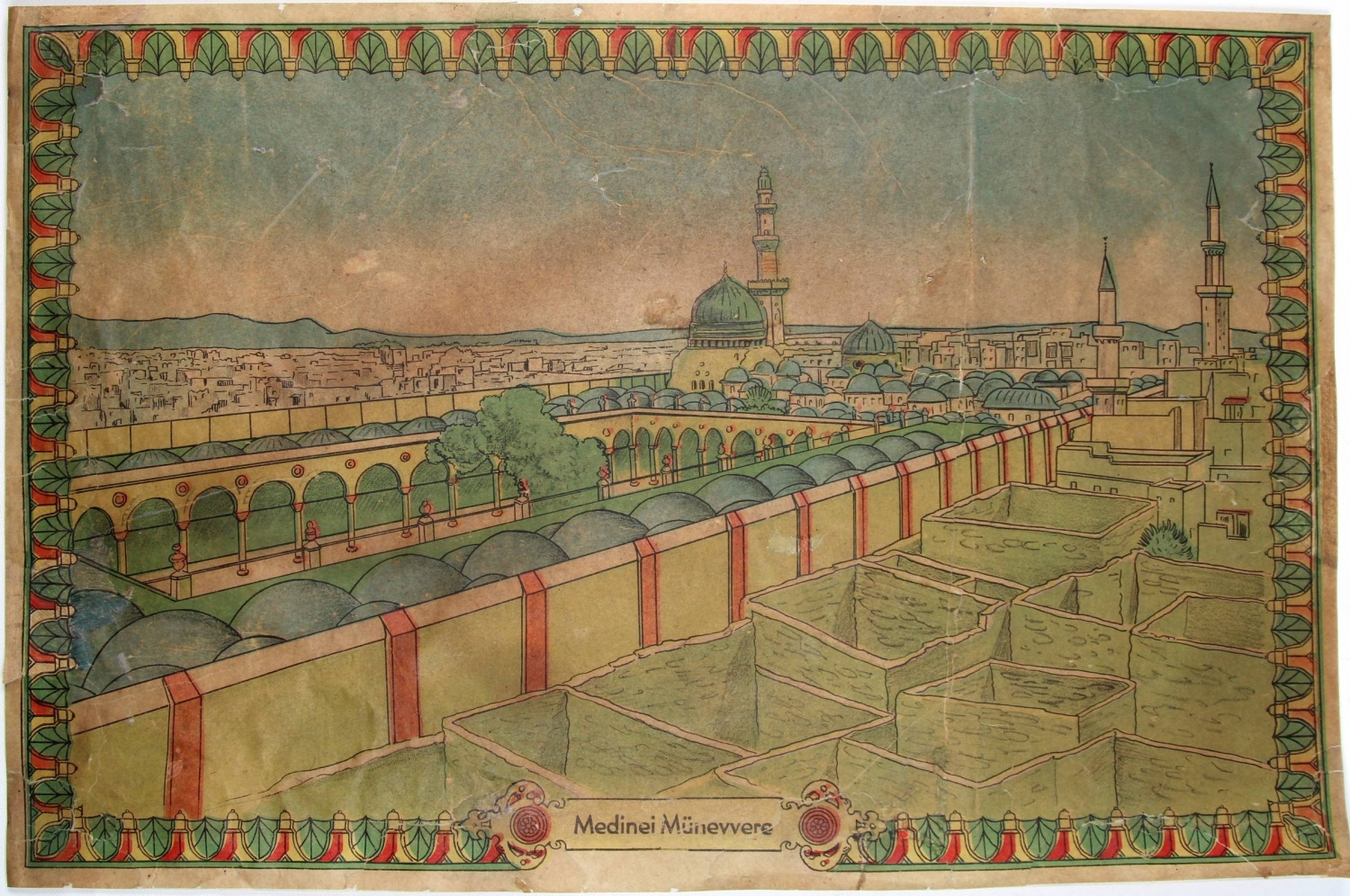 Medinei Münevvere taş baskı afiş, tamirli, 46x29 cm