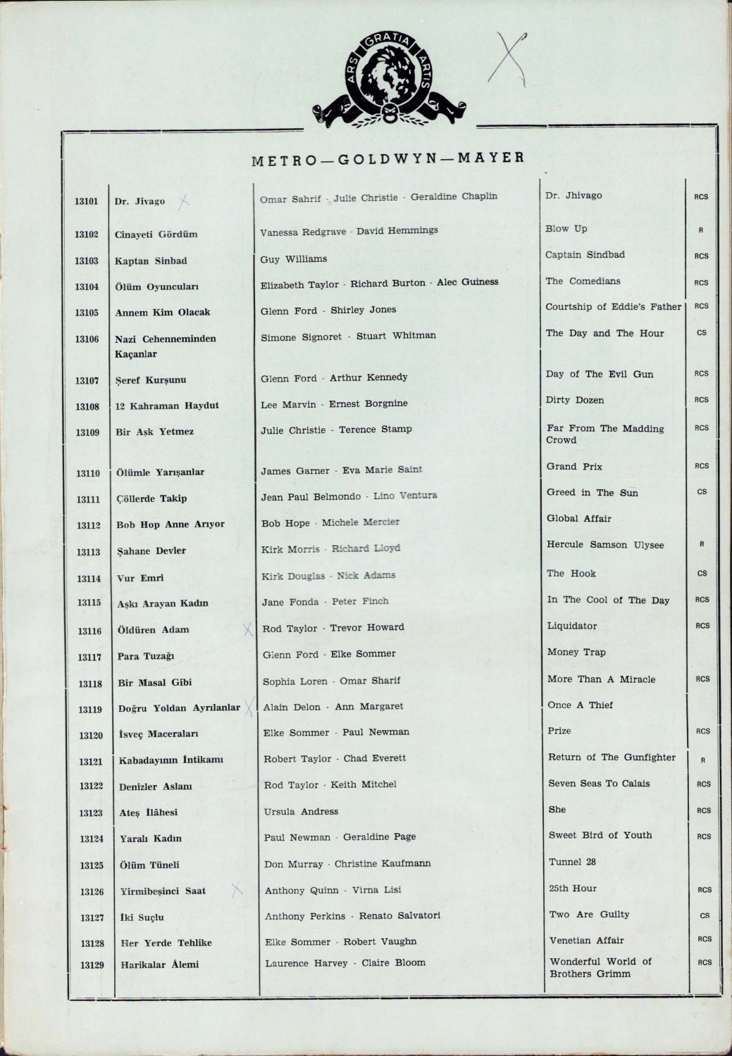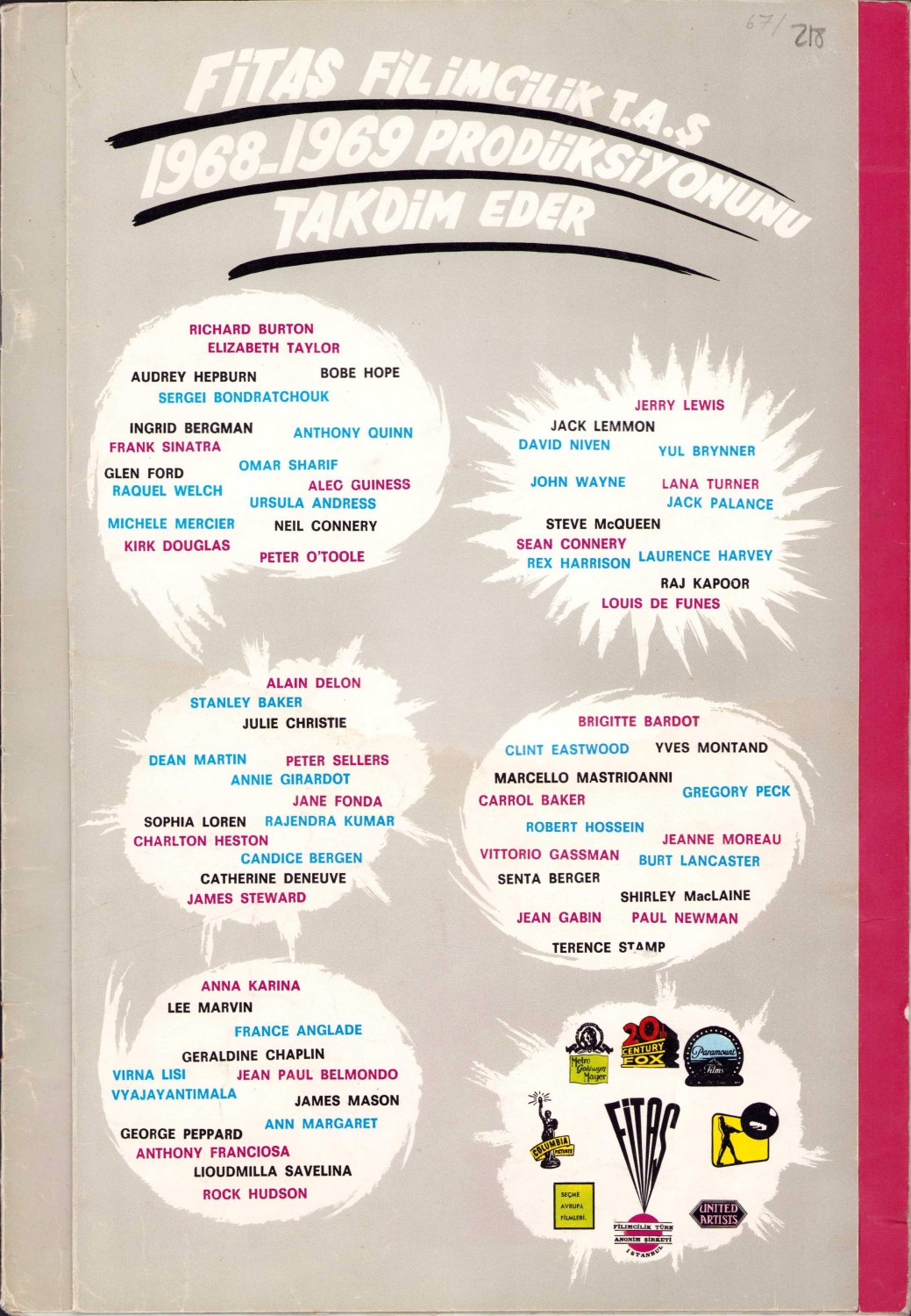 Fitaş Film 1968 - 1969 film listesi, 5 sayfa, 21x32 cm