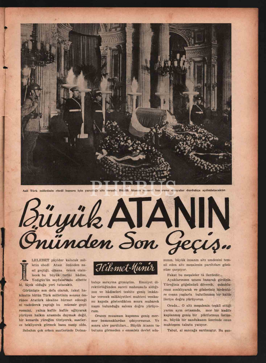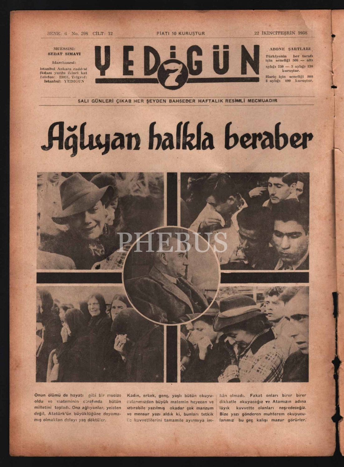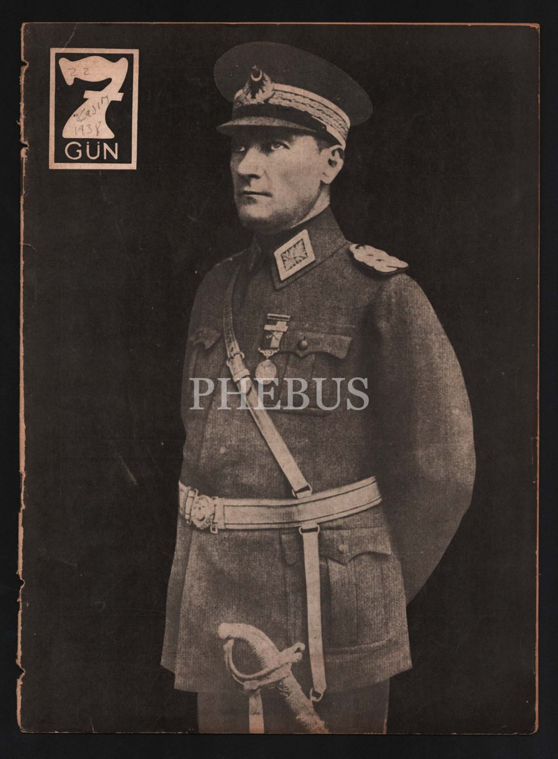 Mareşal Üniformalı Mustafa Kemal Atatürk kapaklı, Mustafa Kemal Atatürk´ün vefatı üzerine yayımlanan YEDİGÜN dergisinin 22 İkinciteşrin (Kasım) 19358 tarihli 298. sayısı, 18 sayfa, 24x33 cm...