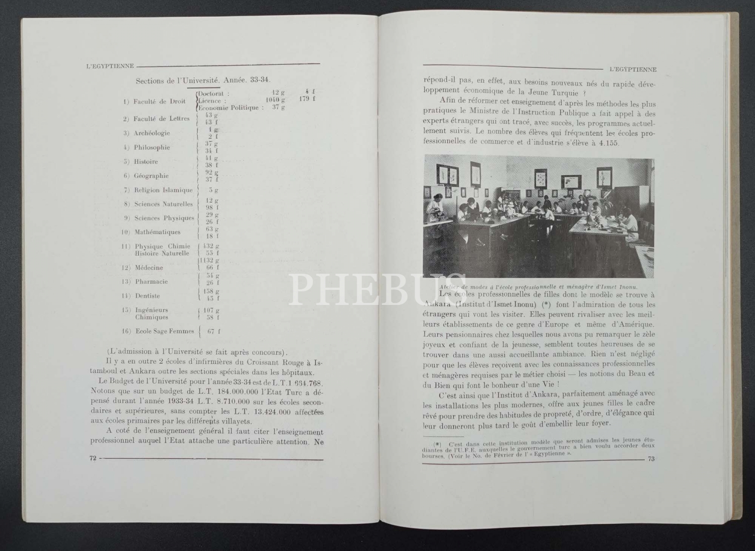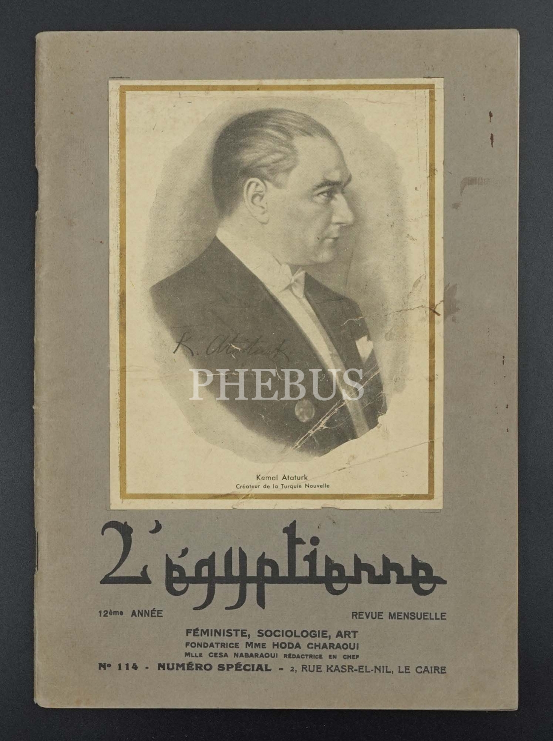 Kahire'de yayımlanan Atatürk kapaklı L'Egyptinne dergisi... İçinde Türk Edebiyatı´nın ünlü isimlerinden Yakub Kadri (Karaosmanoğlu), Falih Rıfkı (Atay) ve Aka Gündüz´ün yazıları mevcuttur.