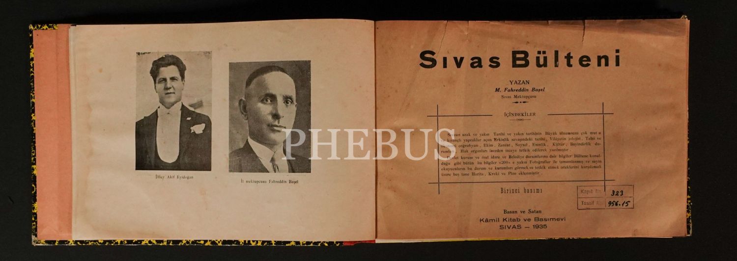 SİVAS BÜLTENİ, M. Fahreddin Başel, 1935, Sivas Kamil Kitabevi ve Basımevi, 230 sayfa, 29x19 cm...