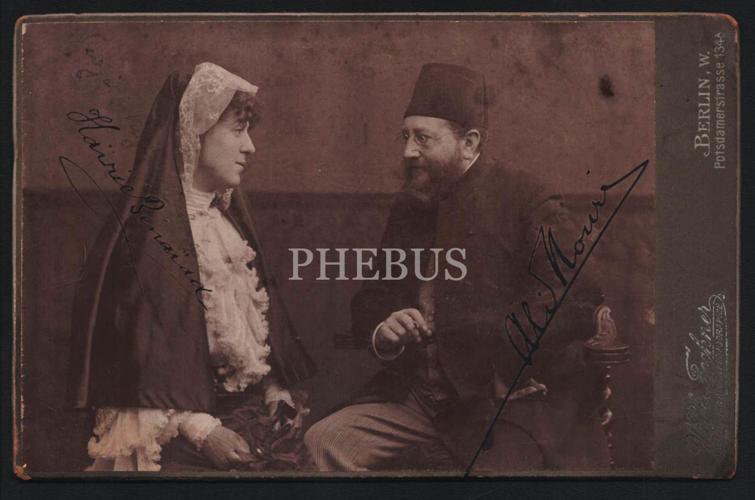 Gustaf Noring ya da Müslüman olduktan sonraki adıyla Ali Nuri Bey ve eşi Hayriye Benayat Hanım´ın imzalarını taşıyan stüdyo hatıra fotoğrafları, W. Fechner Ftoğrafhanesi (Berlin, Almanya), 16x10 cm...