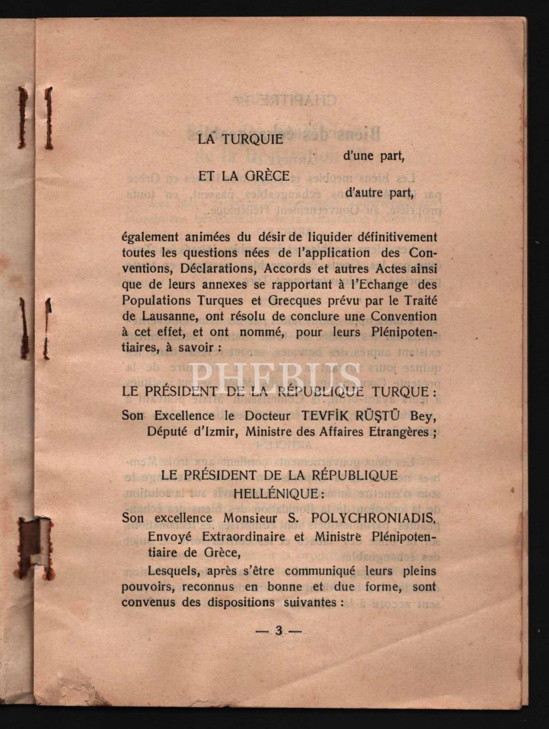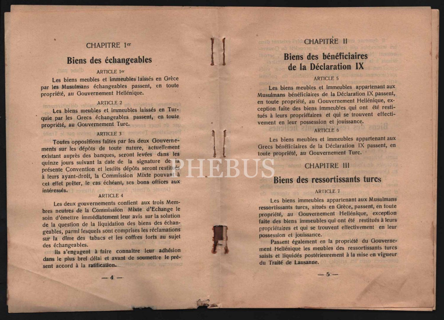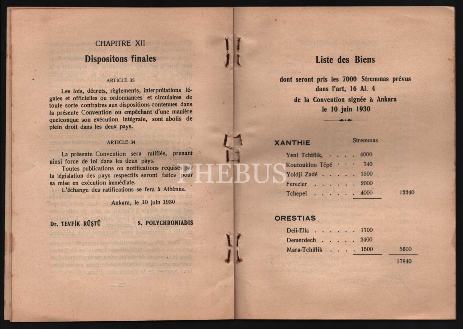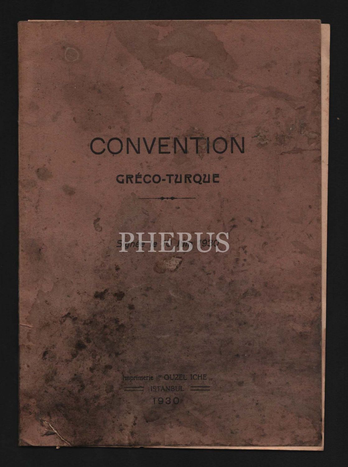 "CONVENTİON GRECO-TURQUE" başlıklı 10 Haziran 1930 tarihinde taşınmaz mallar ve taşınmaz malların değerlerine dair Türkiye ve Yunanistan hükümetleri arasında imzalan anlaşmanın Fransızcası, 32 sayfa, 14x20 cm...