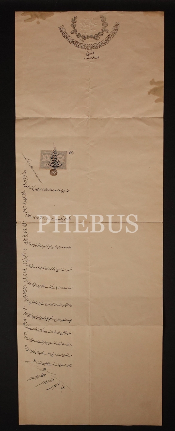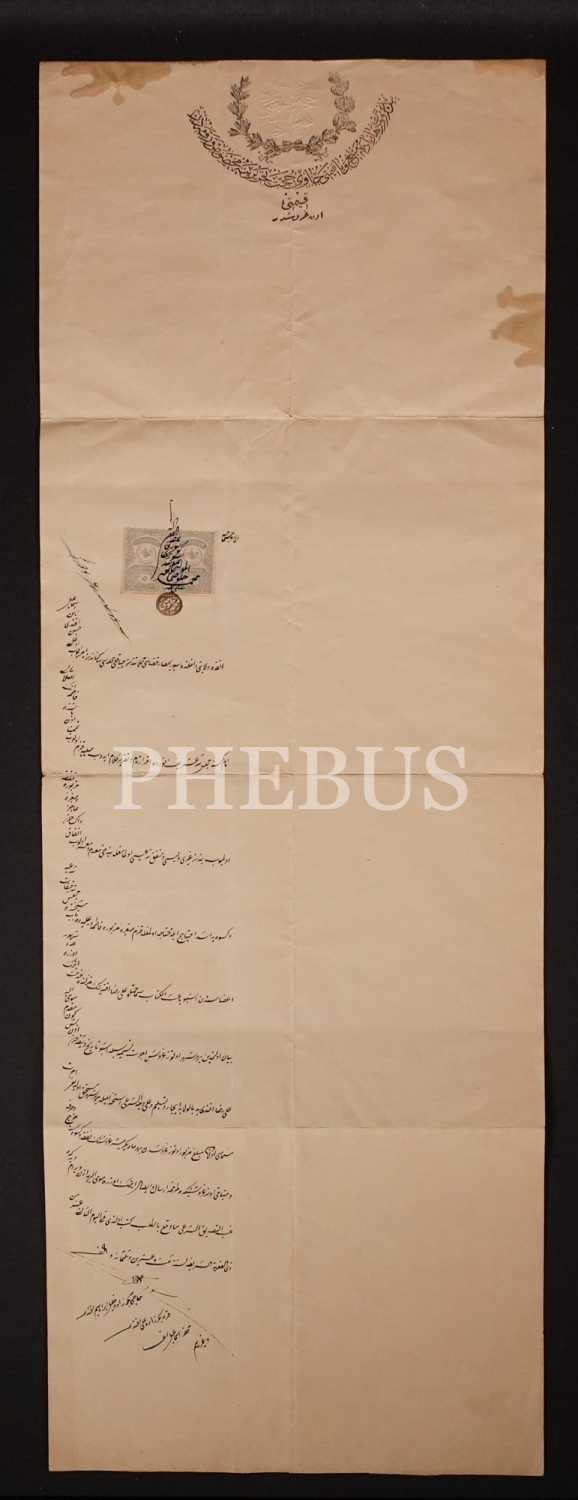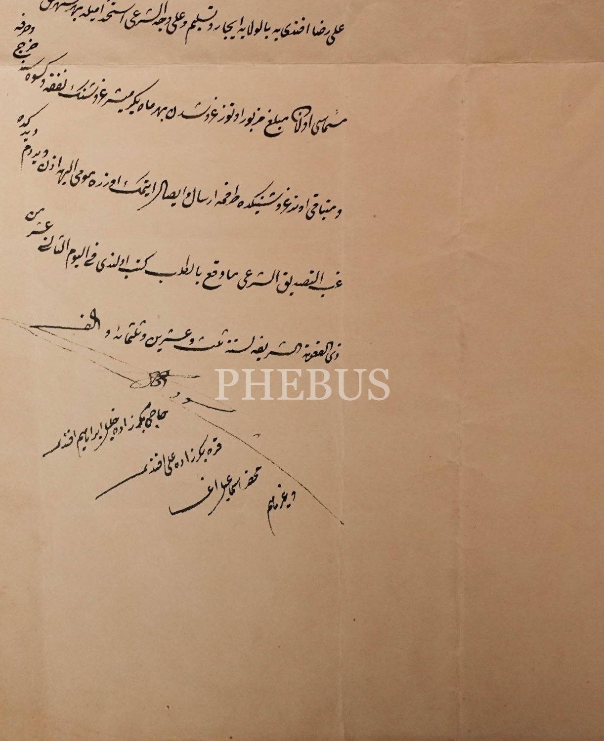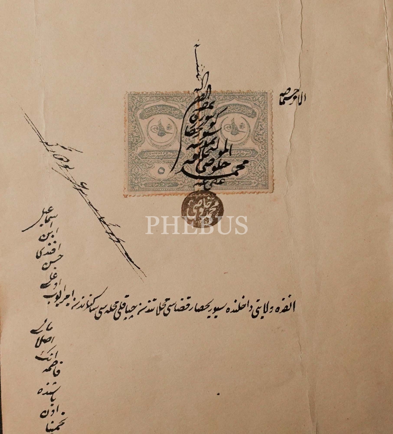 Ali Hüseyin Efendi bin İsmail Efendi´nin yardıma muhtaç küçük kızı Fatma Hanım´ın kendisinden başka velisinin bulunmadığına ve 30 kuruşluk maaşının kendisine ödenmesi gerektiğine dair çıkarttığı 1323 tarihli mahkeme kararı, 80x28 cm...