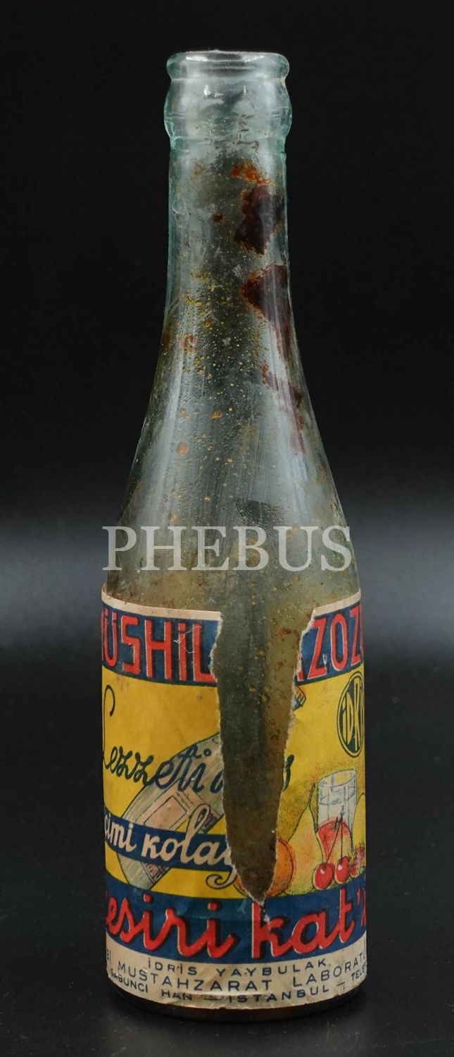 İdris Müshil Gazozu şişesi (boş), İdris Yaybulak Tıbbî Mustahzarat Laboratuarı (Ketenciler, Sabunlu Han - İstanbul), 20x6 cm...