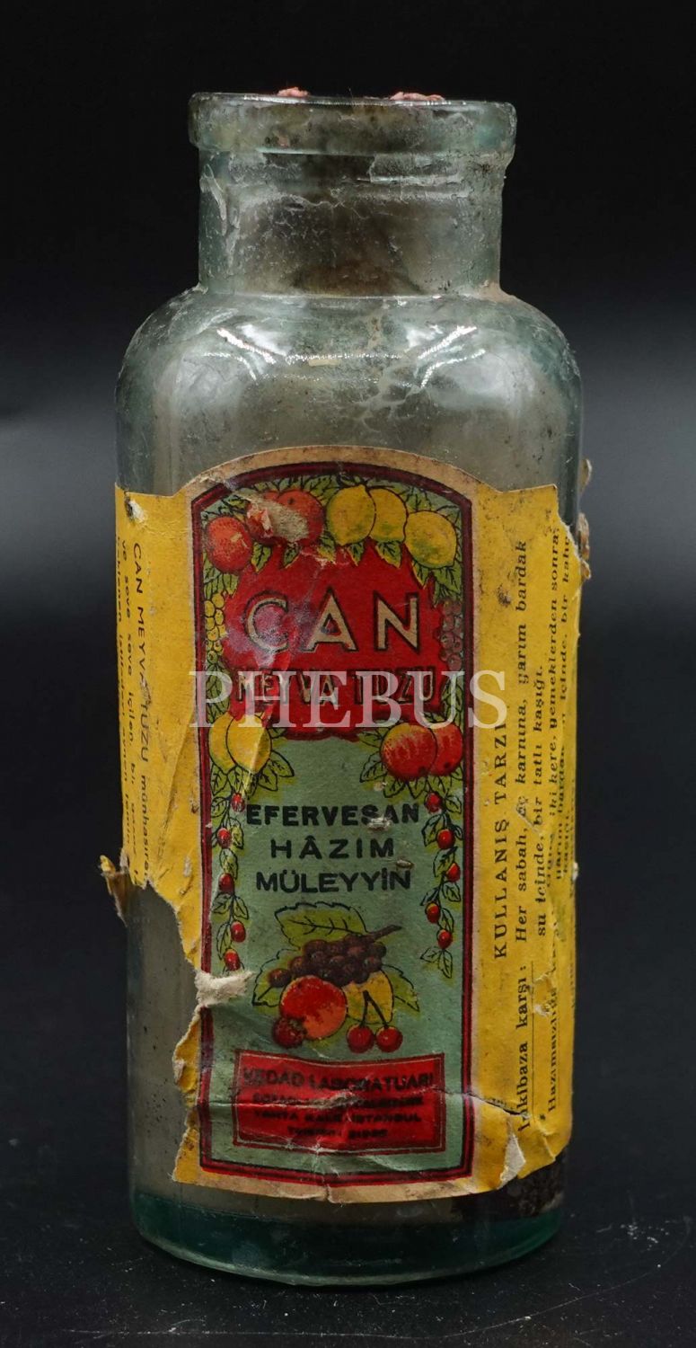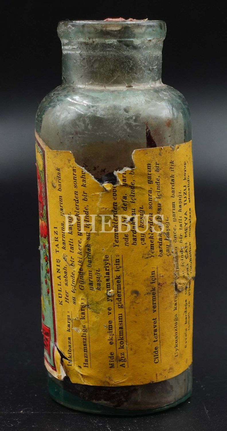 Can Meyva Tuzu şişesi (boş), Kedad Laboratuarı (Tahtakale-İstanbul), 12x5 cm...