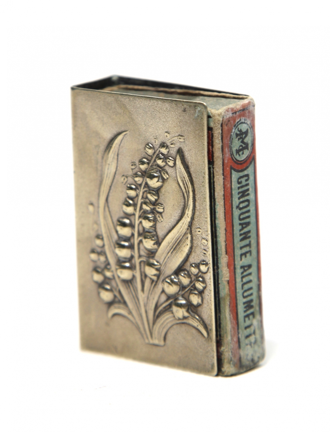 Kabartma çiçek desenli teneke kibritlik, 3x5x1 cm