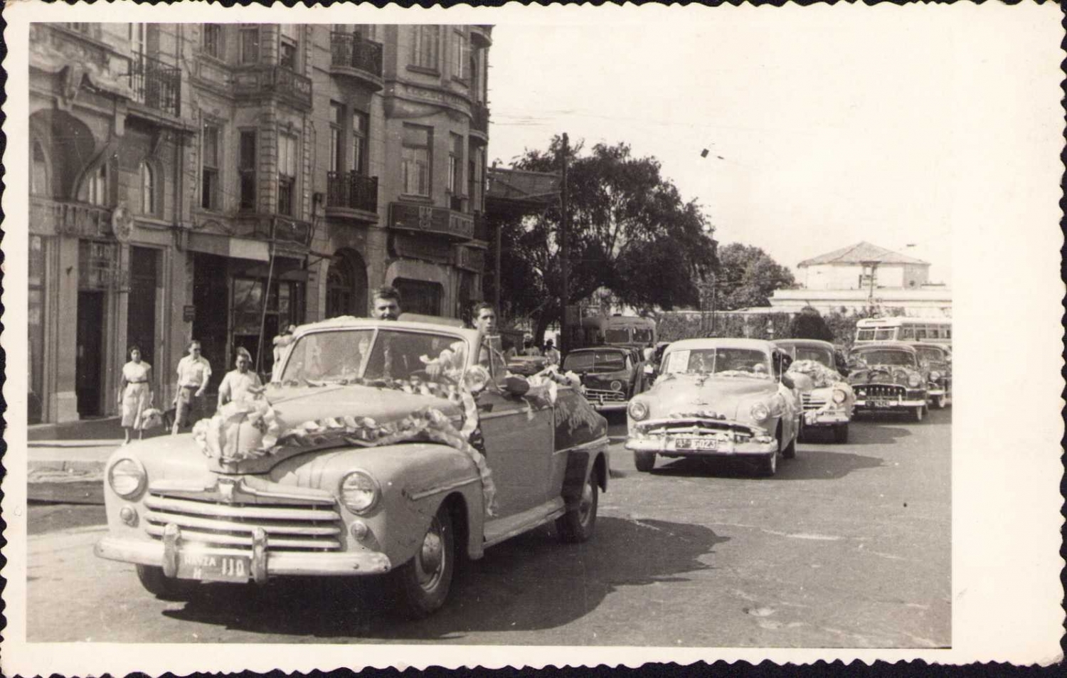 Taksim'de düğün alayı, Samsun Havza plakalı eski arabalar, 13x8 cm