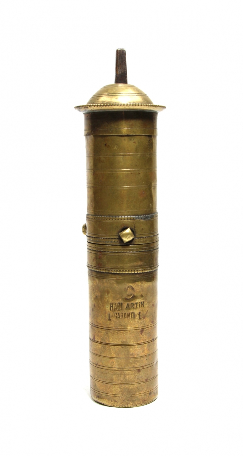 Hacı Artin damgalı, pirinçten mamül kahve değirmeni, 4x21 cm