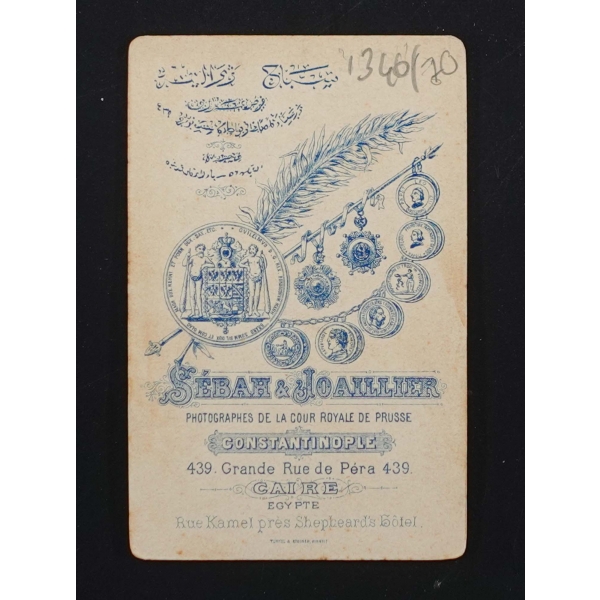 Bitki dekoruyla poz veren küçük çocuğun kartvizit boy (CDV) stüdyo hatıra fotoğrafı, Sebah & Joaillier, Constantinople, 7x11 cm...