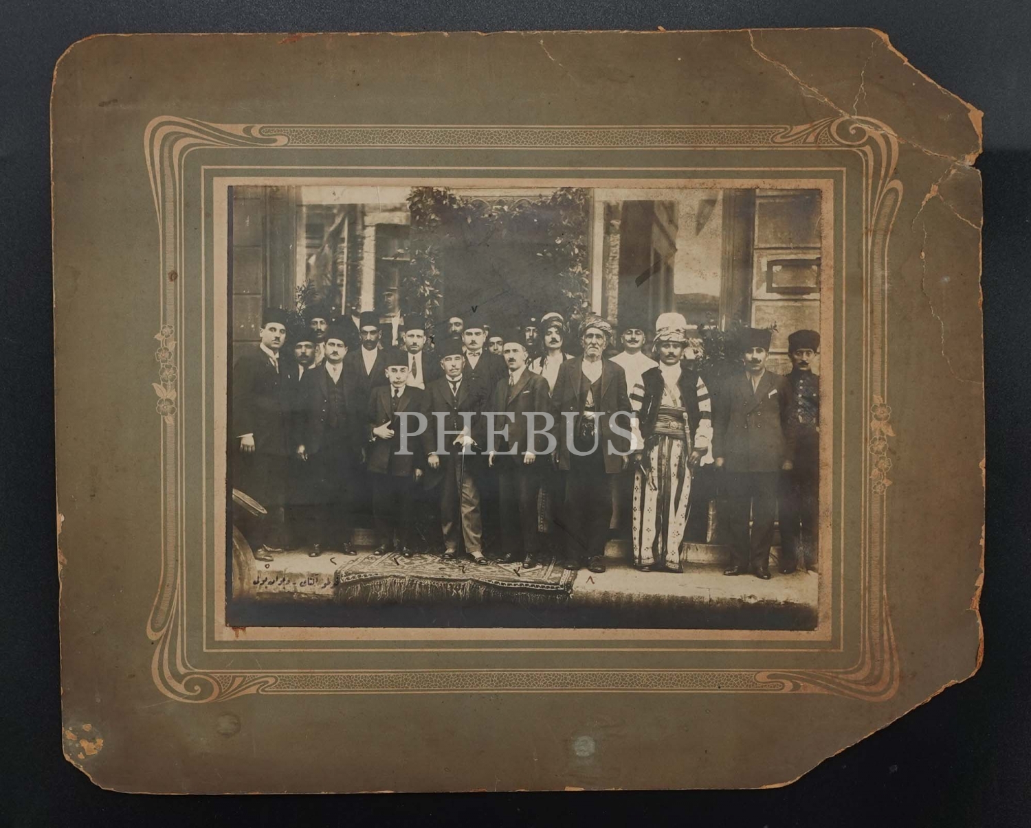 İstanbul Hamallar Cemiyeti'nin açılışı münasebetiyle bir araya gelen, aralarında uzun yaşamıyla tarihe geçen Zaro Ağa'nın da bulunduğu topluluğun hatıra fotoğrafı, paspartusuyla birlikte 36x30 cm...