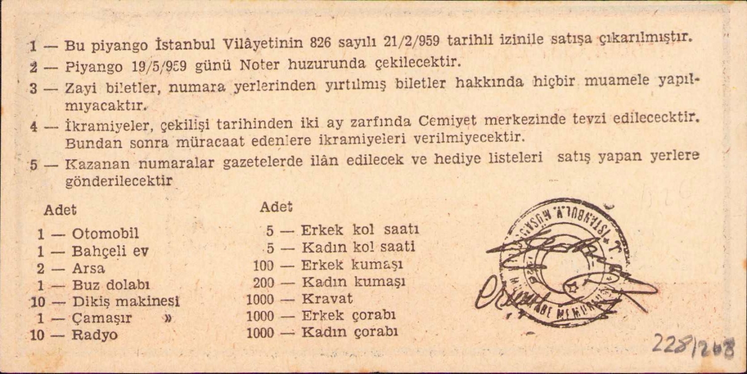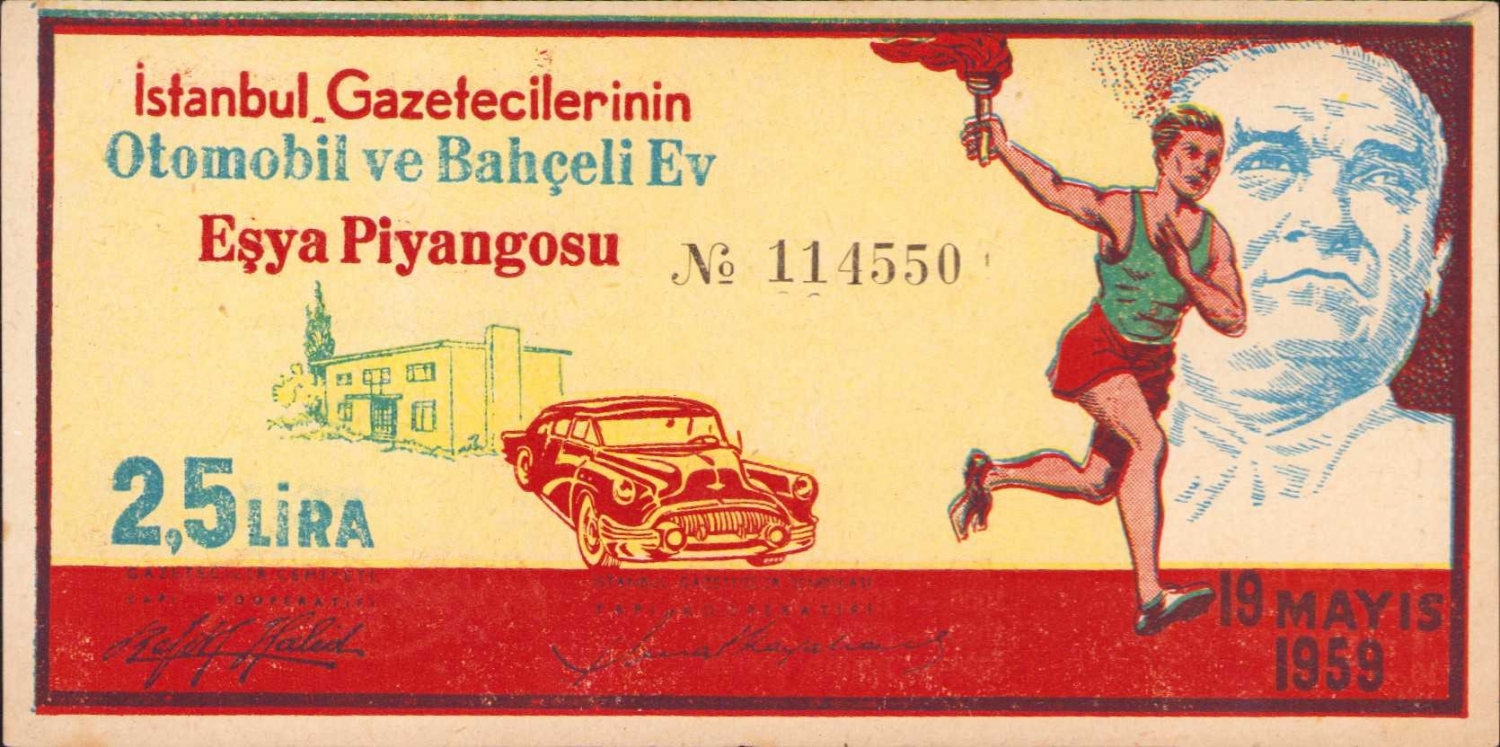 İstanbul Gazetecilerinin Otomobil ve Bahçeli Ev Eşya Piyangosu 1959, 13x6 cm