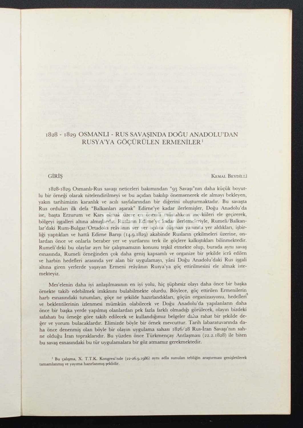 1828-1829 OSMANLI RUS SAVAŞINDA DOĞU ANADOLU´DAN RUSYA´YA GÖÇÜRÜLEN ERMENİLER, Kemal Beydilli, 1828, Türk Tarih Kurumu Basımevi, 70 sayfa, 20x28 cm...