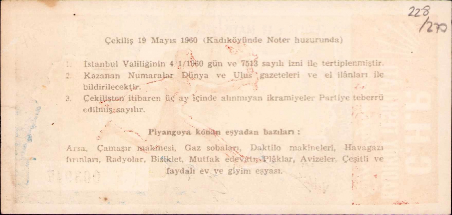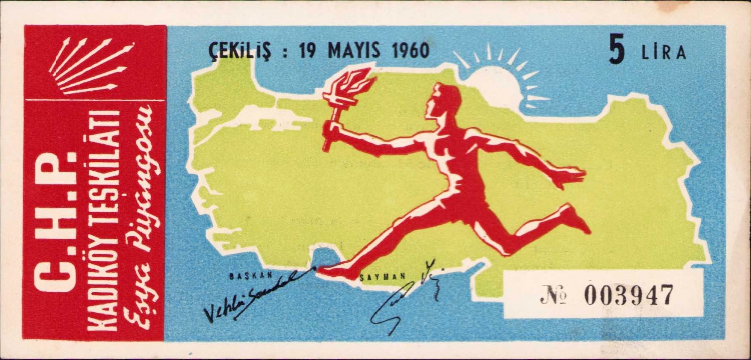 C.H.P. Kadıköy Teşkilatı Eşya Piyangosu 1960, 14x6 cm
