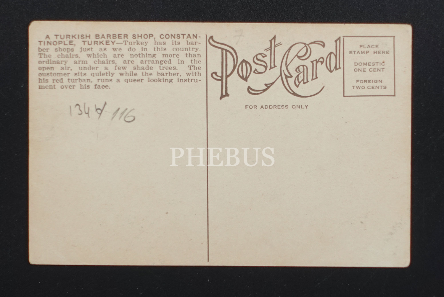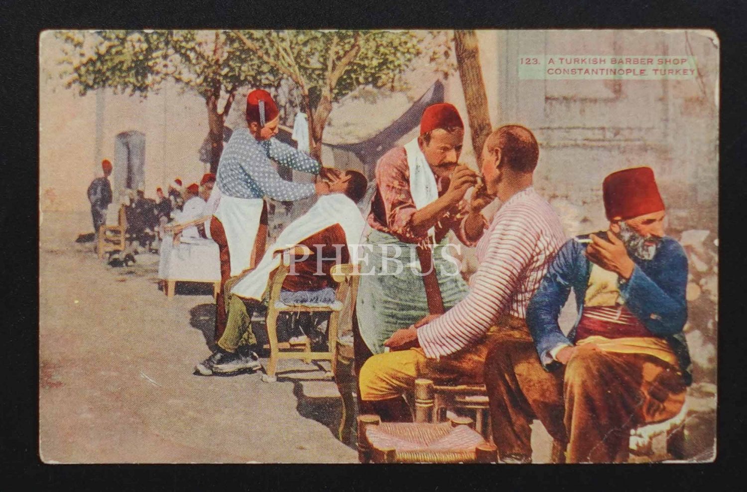 İstanbul´da seyyar berberler, "A Turkish Barber Shop Constantinople, Turkey", 14x9 cm...