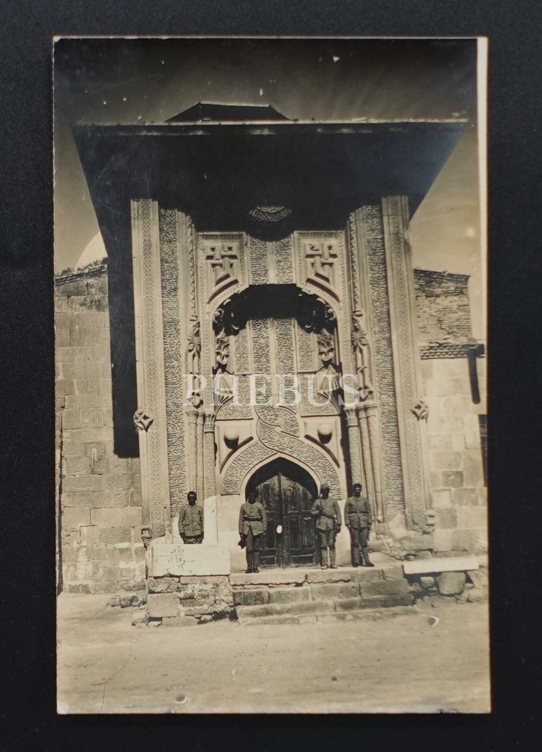 İnce Minareli Medrese (Konya) kapısı önünde nöbet tutan askerler, 9x14 cm...