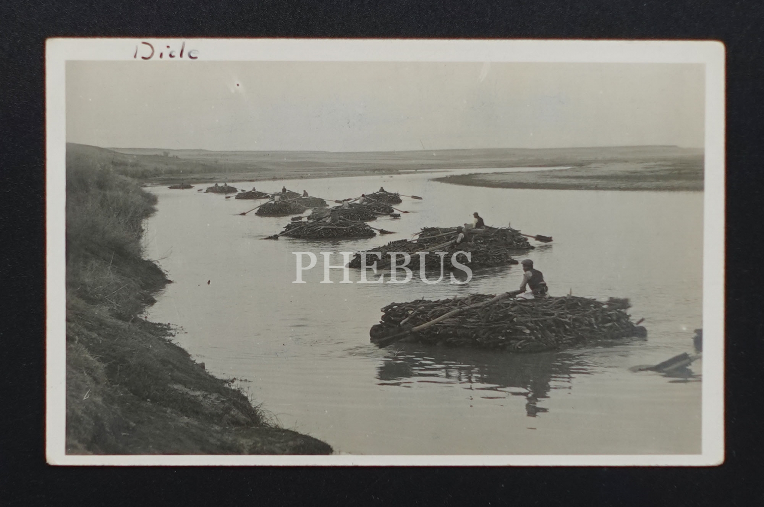 Dicle Nehri üzerinden odun nakleden kayıkçılar, 14x9 cm...