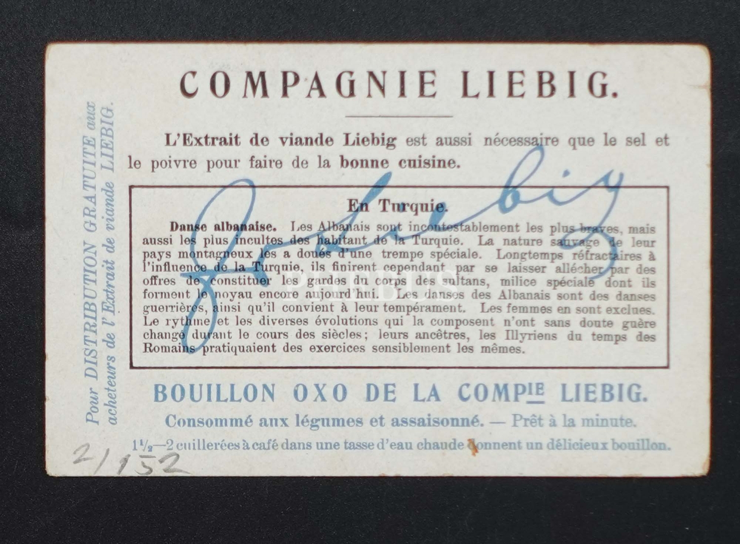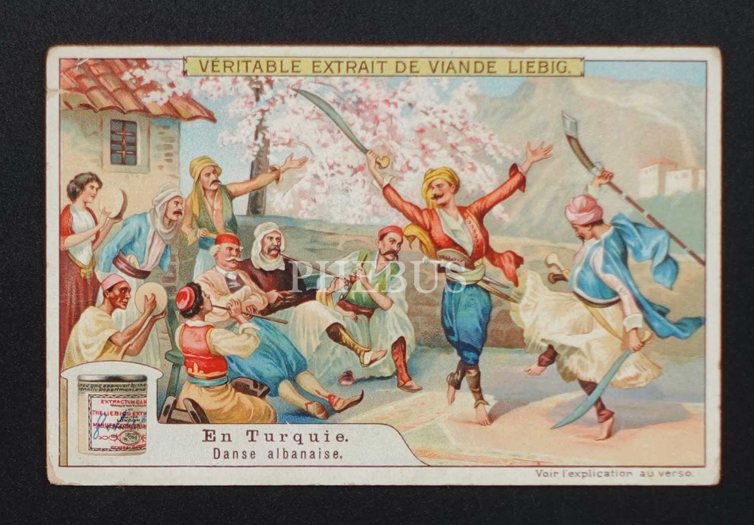 Arnavut dansı görselli "Liebig" et suyu kartı, 11x7 cm...