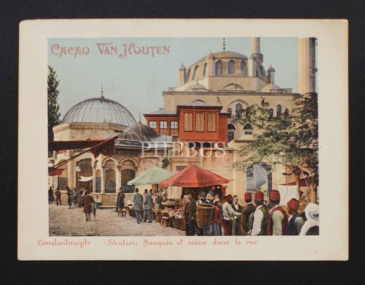 Cacao Van Houten firmasının Üsküdar Camii ve sokak görünümlü reklam kartpostalı, 15x11 cm...