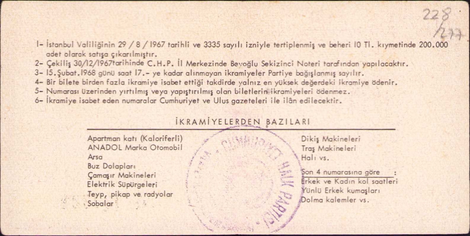 C. H. P. Eşya Piyangosu 1967, 14x6 cm
