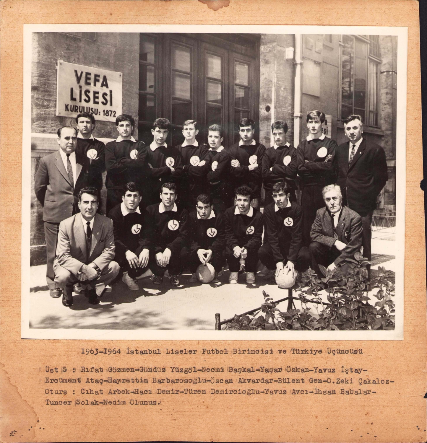 Vefa Lisesi 1963 - 1964 futbol takımı; İstanbul liseler futbol birinci ve Türkiye üçüncüsü, 21x17 cm