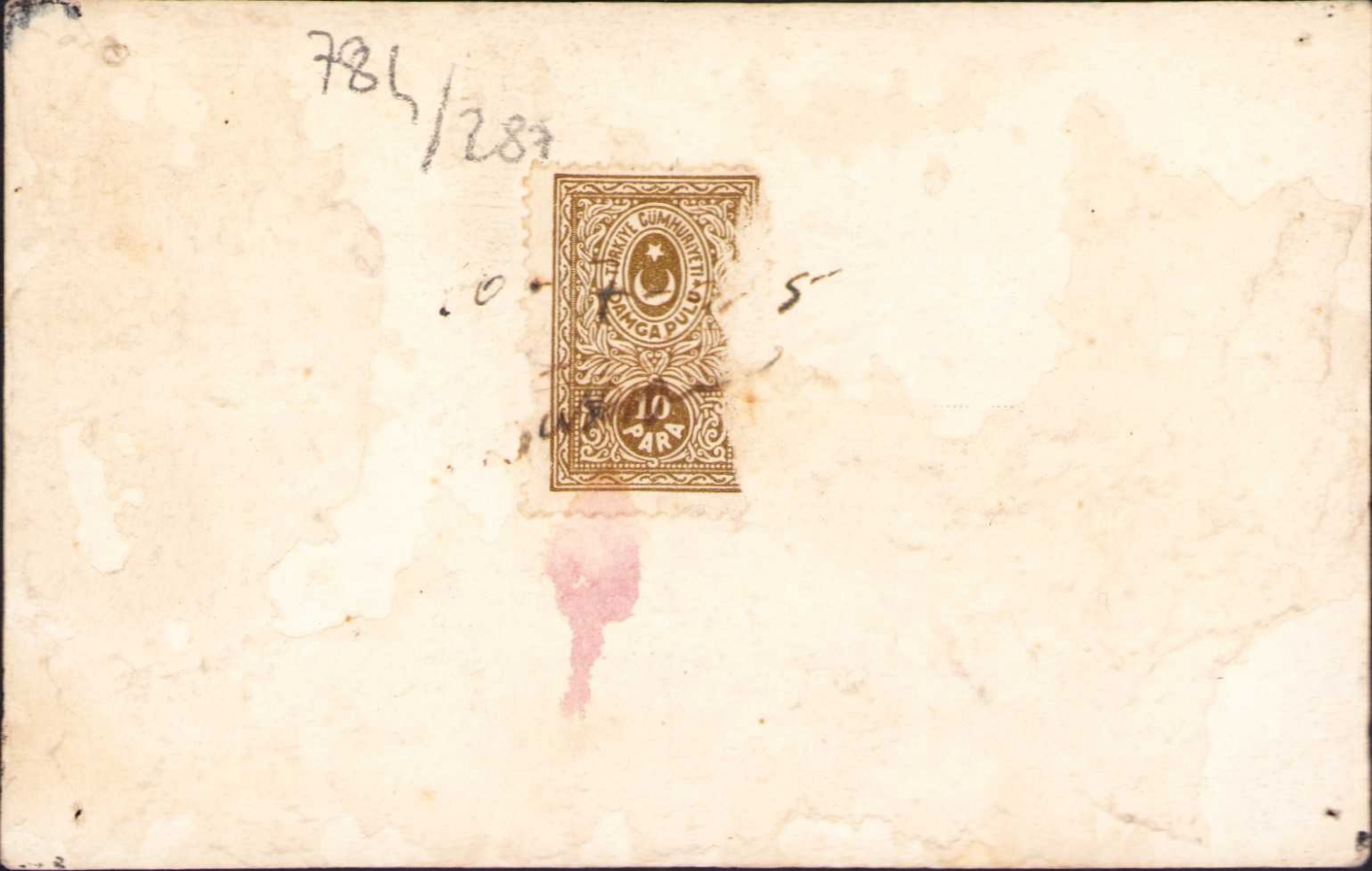 Erken dönem meslek fotoğrafı, berber, duvarda tarife afiş, 12x8 cm