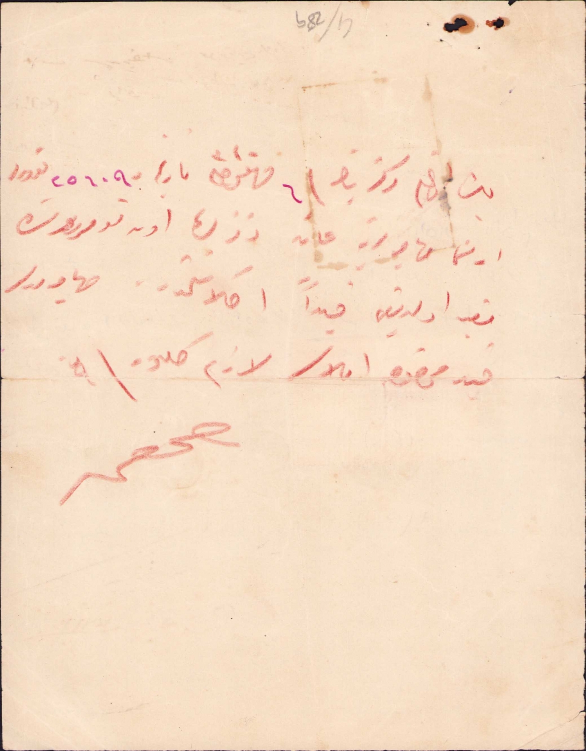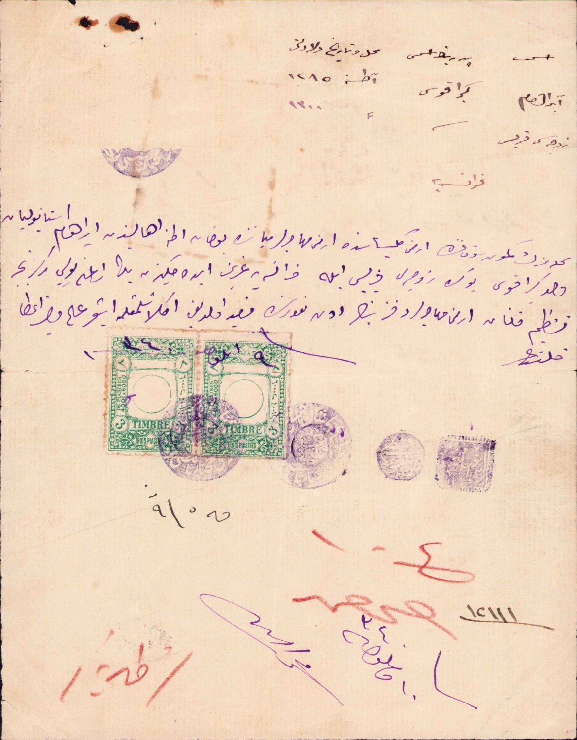 Osmanlıca Fransaya iltica edecek Adana Ermenisi Abraham efendi ve ailesinin geçici süre için İstanbulda ikametleri hakkındaki doküman, 1340 tarihli, 16x21 cm