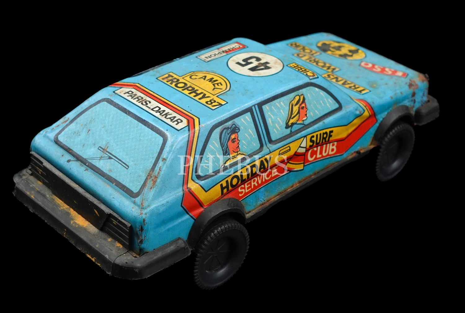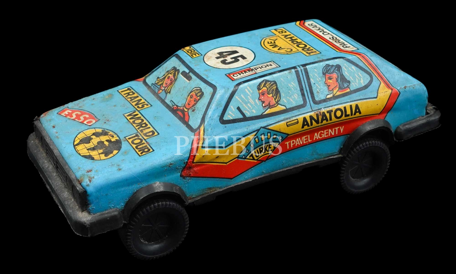 "Turkey Anatolia Travel Agenty" yazılı, Gürel marka teneke seyahat arabası, 22x9x5 cm...