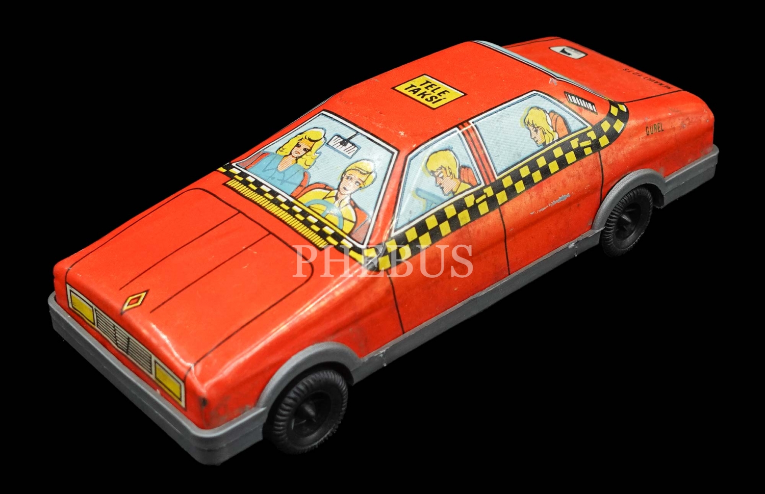 Gürel marka teneke araba, Tele Taksi, Renault 12 TS, 19x7x5 cm...
