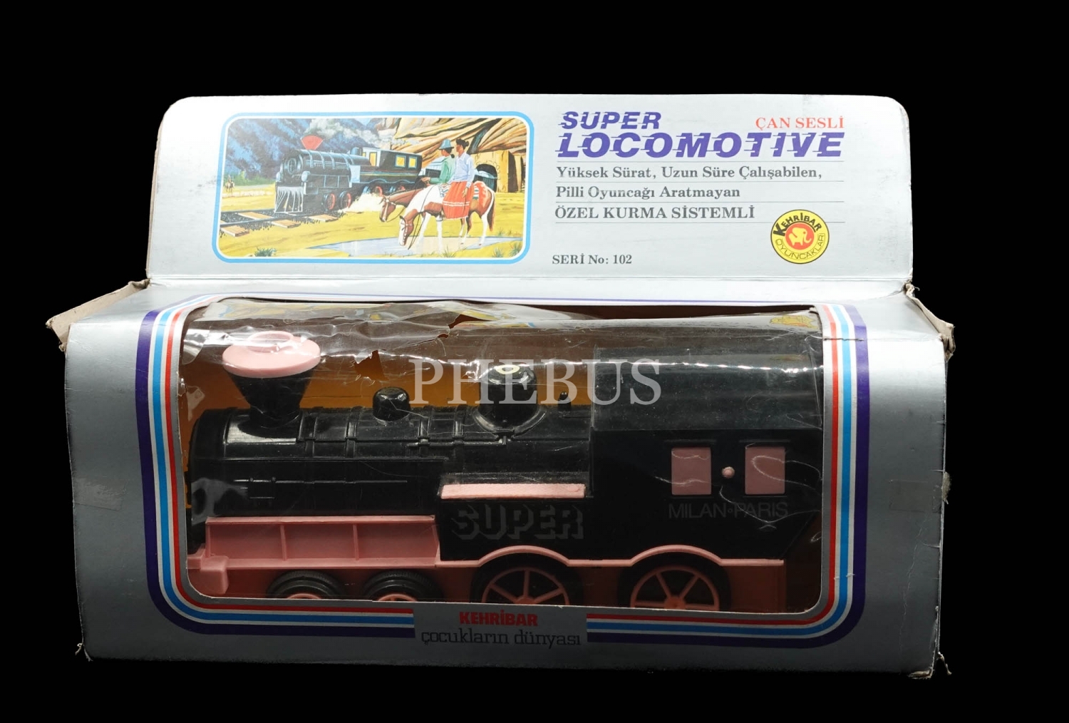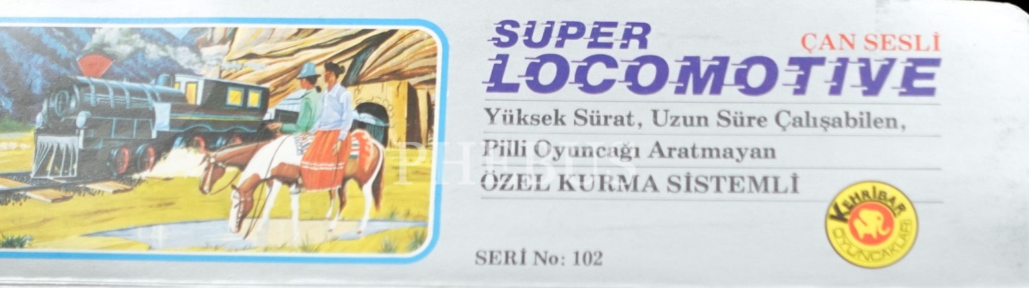 Orijinal kutusunda Kehribar Oyuncakları marka plastik "Çan Sesli Super Locomotive", kutu 35x15x11 cm...