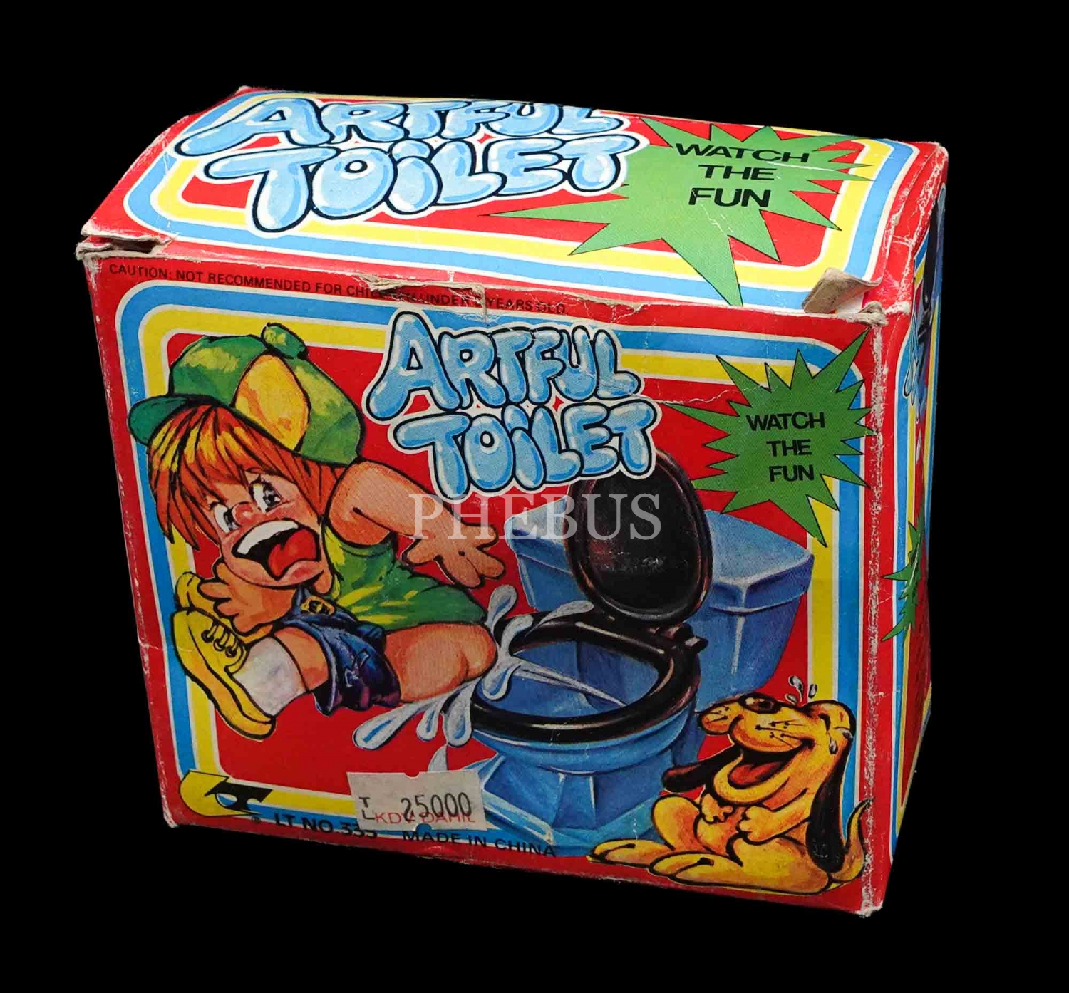 Orijinal kutusunda su fışkırtan Çin malı tuvalet oyuncağı, "Artful Toilet", kutu 13x11x6 cm...