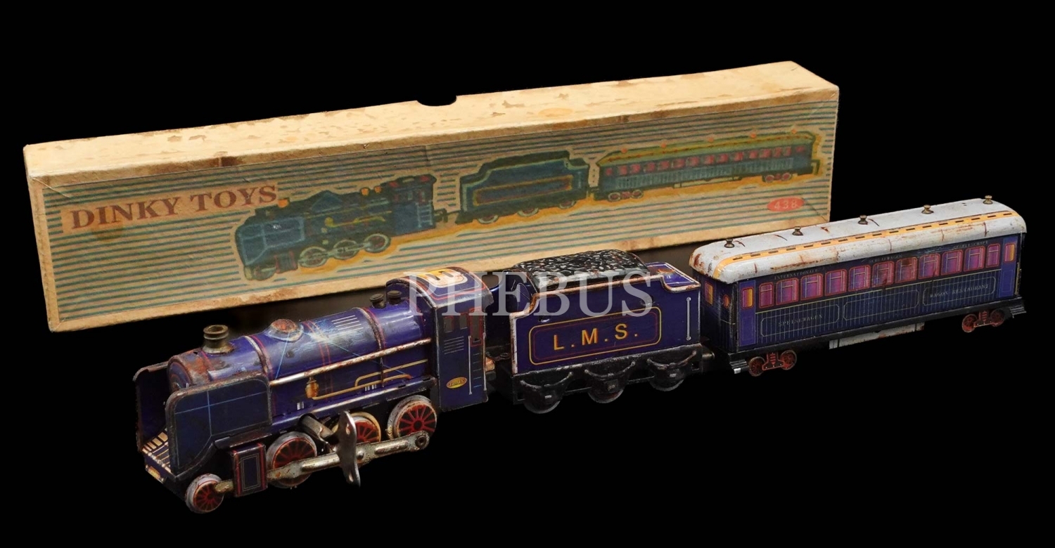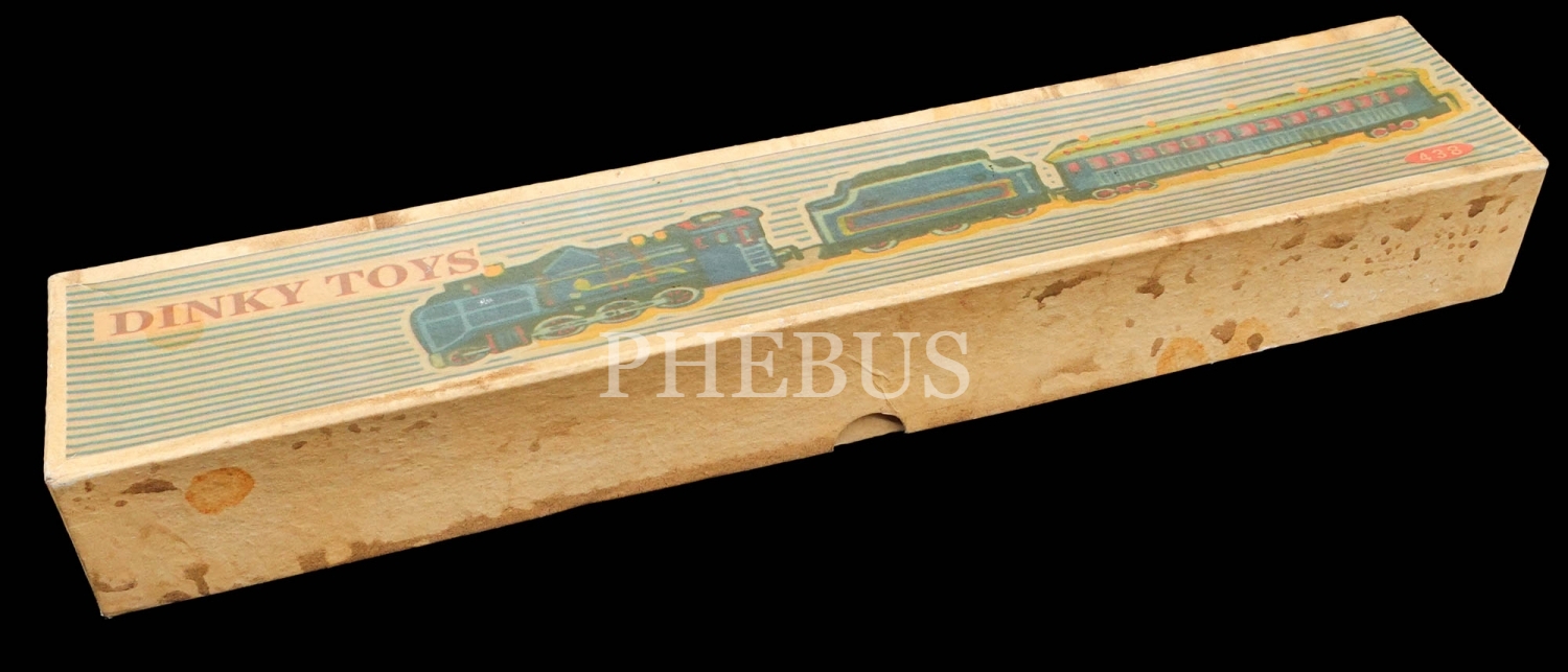 Karton kutusunda Dinky Toys marka kurmalı tren seti, 37x7x5 cm...