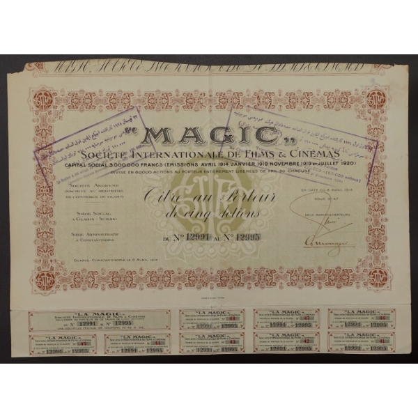 İstanbul MAGIC Sinemaları A.Ş, 1914 Tarihli Beş Paylık Hisse Senedi