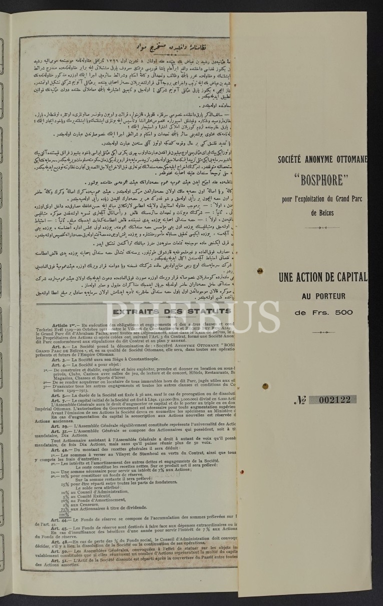 Boğaziçi Beykoz Parkı Osmanlı Anonim Şirketi, 1914 Tarihli Bir Paylık Hisse Senedi