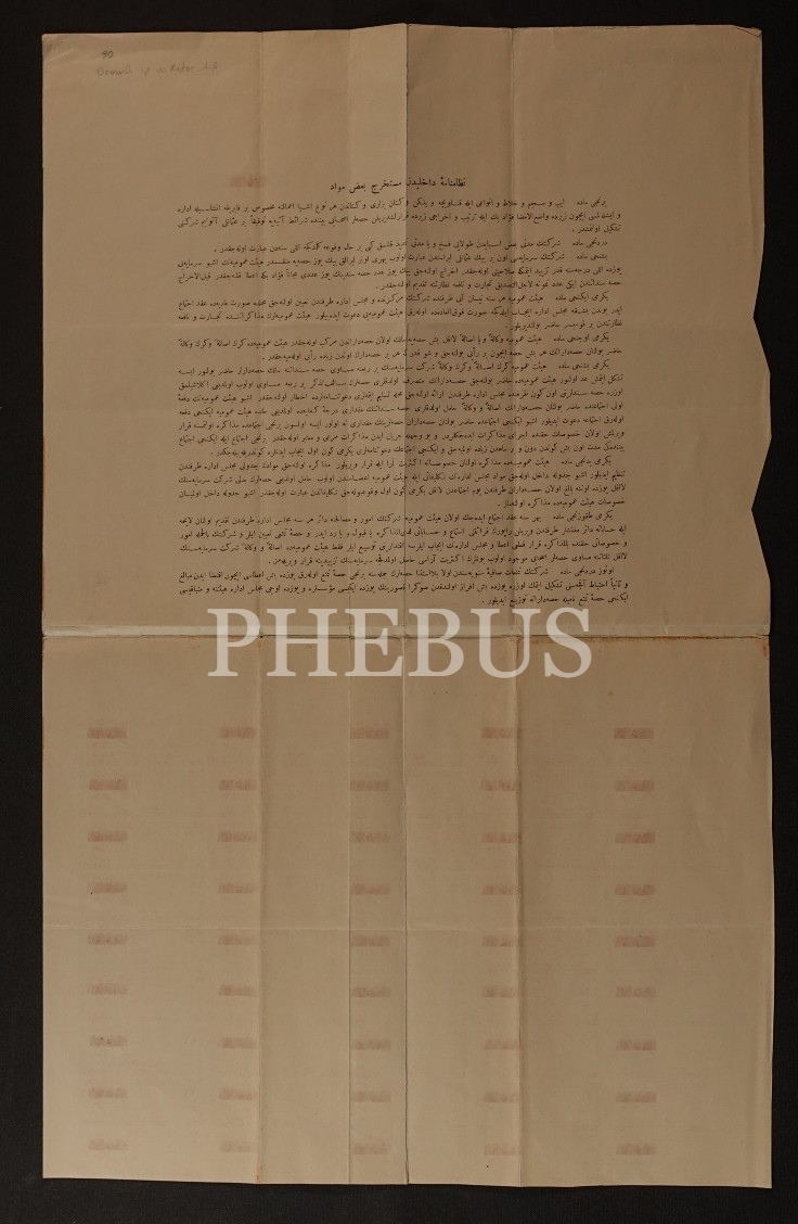 Osmanlı İp ve Keten Anonim Şirketi, 1916 Tarihli Bir Paylık Hisse Senedi