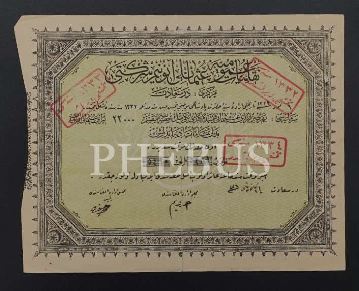 Nakliyatı Umumiye Osmanlı Anonim Şirketi, 1910 Tarihli 10 Paylık Hisse Senedi