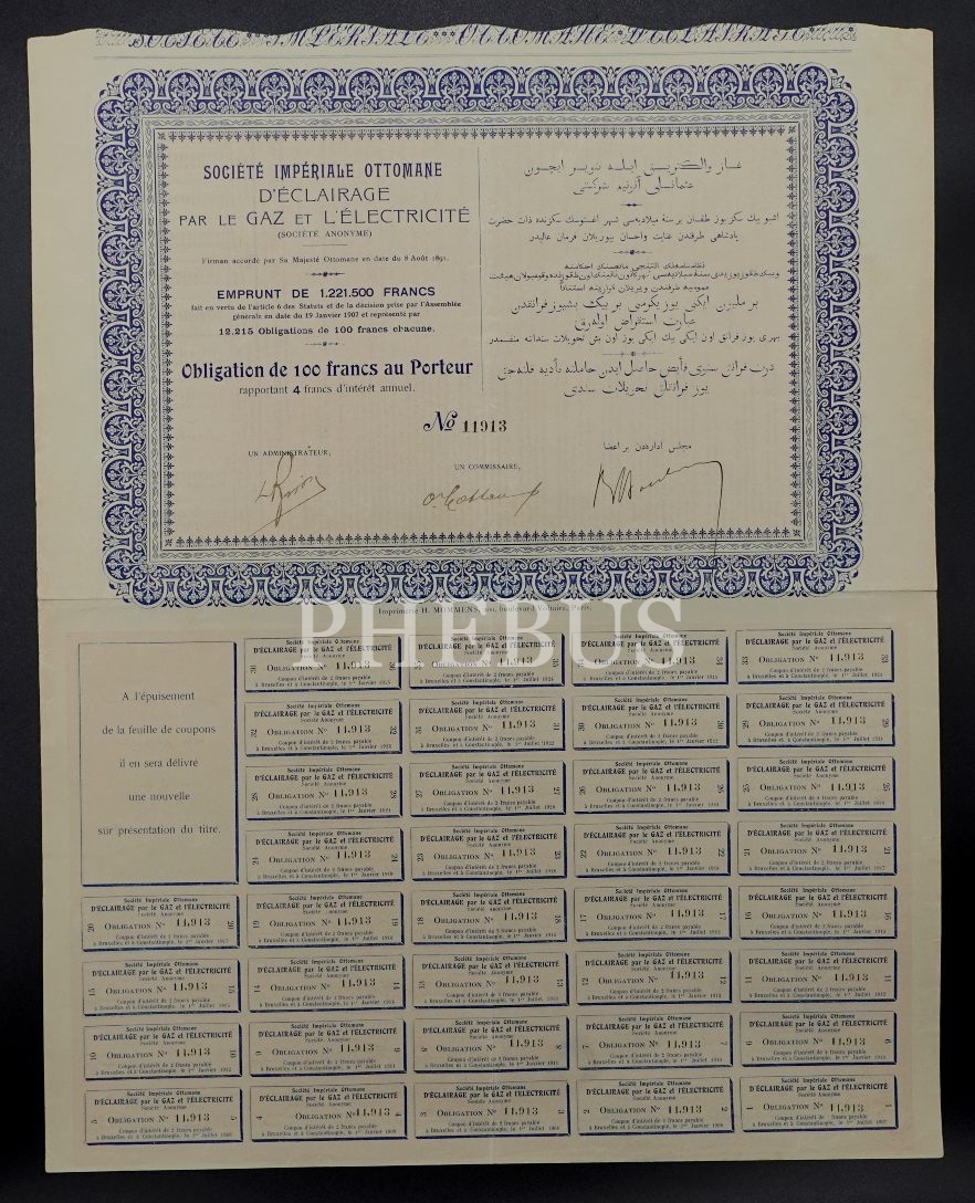 İstanbul Gaz ve Elektrik Osmanlı Anonim Şirketi, 1891 Tarihli Bir Paylık Hisse Senedi