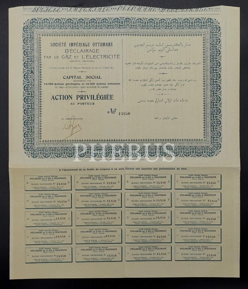 İstanbul Gaz ve Elektrik Osmanlı Anonim Şirketi, 1891 Tarihli Bir Paylık İmtiyazlı Hisse Senedi