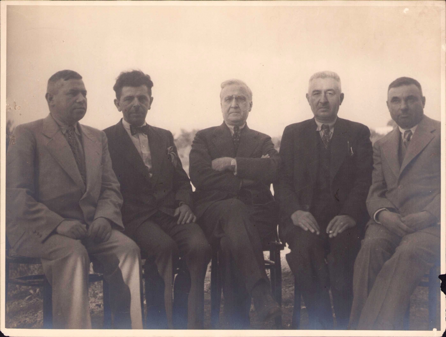 İzmir Güzelyalı hatıra fotoğrafı, 30 Mayıs 1927, Avukat Mehmet Emin, İzmir tütün ticareti kavalalı Şükrü Bey, Avulat Süleyman Bey, Hüseyin Sadettin Arel, 23x16 cm