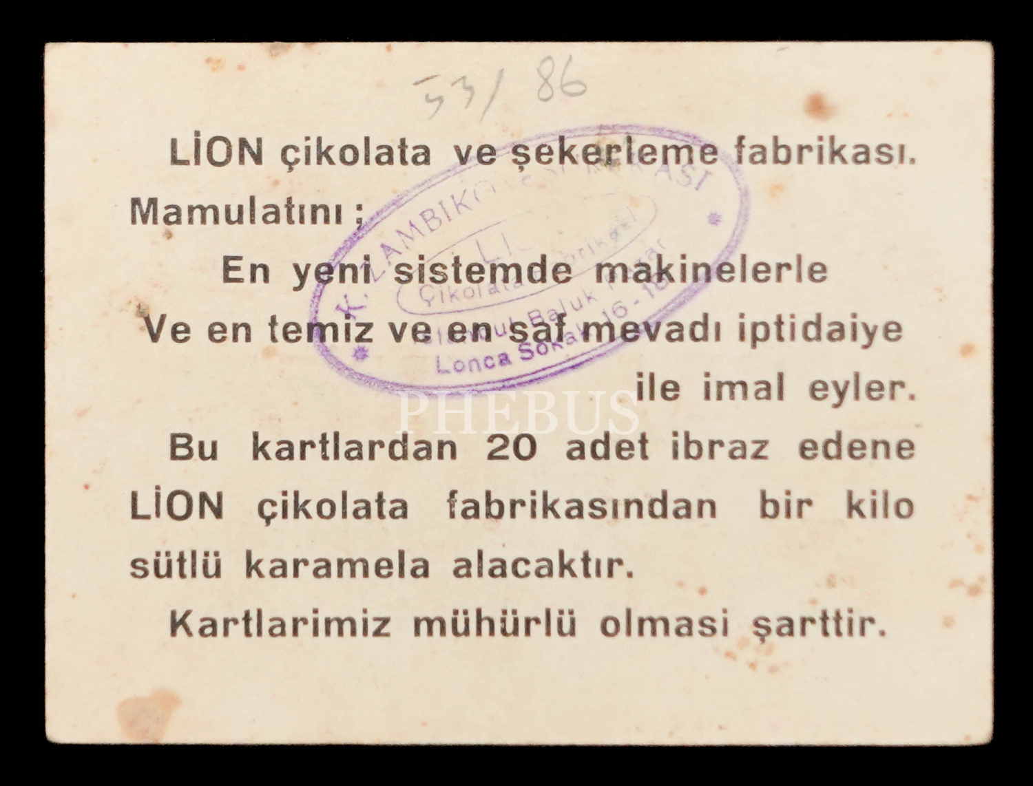 Lion Çikolata Fabrikası işyeri kartı, 11x8 cm...