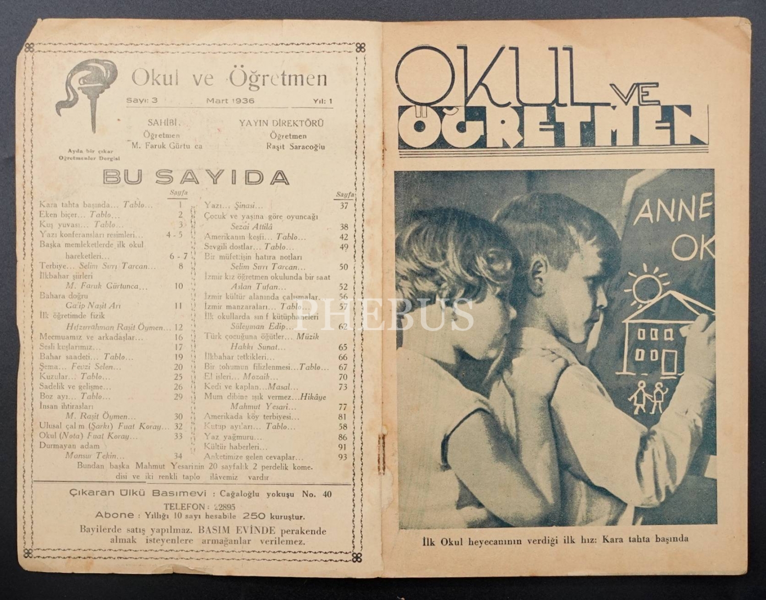 OKUL VE ÖĞRETMEN dergisinin Mart 1936 tarihli 3. sayısı, 96 sayfa, 16x24 cm...