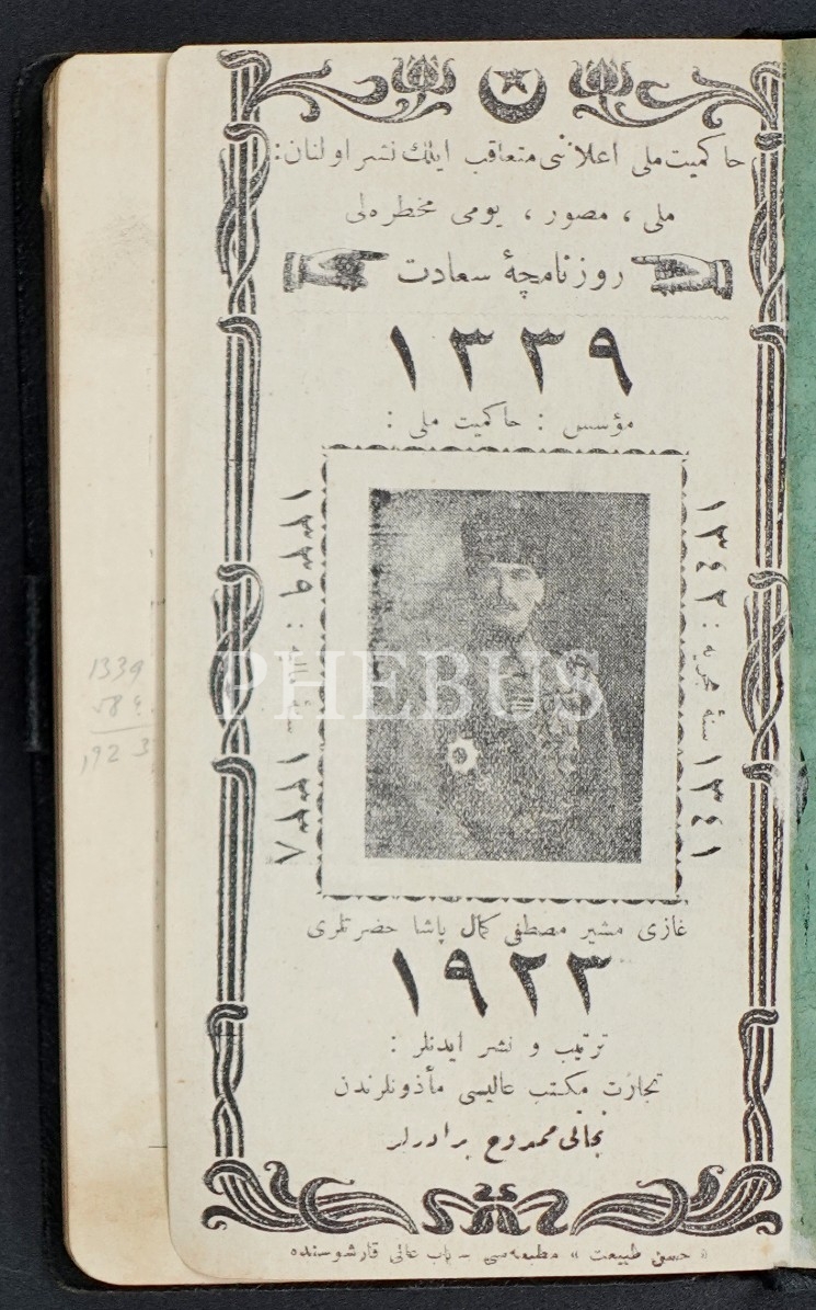 Mustafa Kemal Atatürk görselli,1923 senesi "Necati Memduh Muhtırası", Hüsn-i Tabiyet Matbaası, 9x16 cm....
