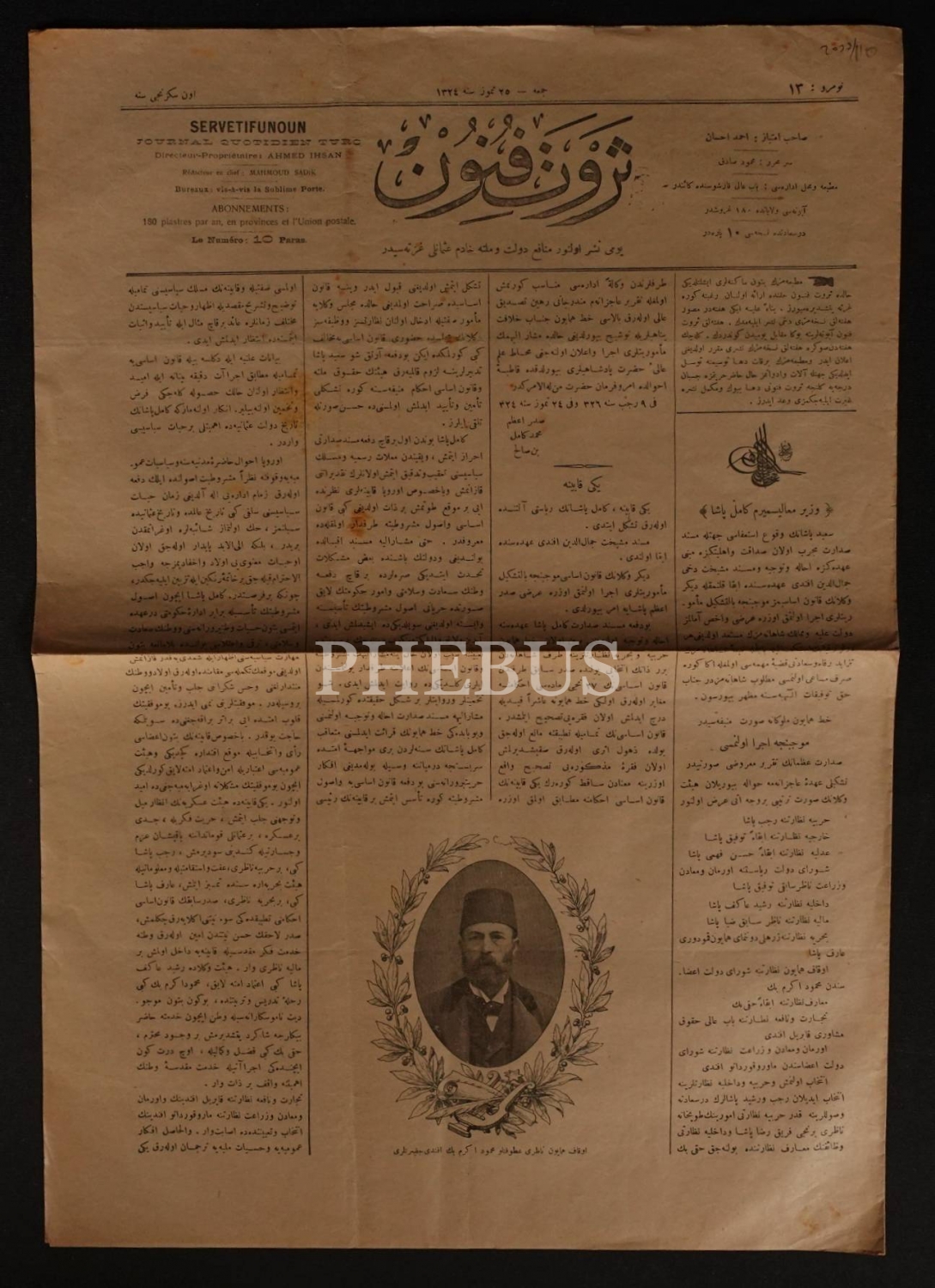 SERVET-İ FÜNUN dergisinin 25 Temmuz 1324 tarihli günlük gazete formatında yayımlanan 13. sayısı, 50x35 cm...